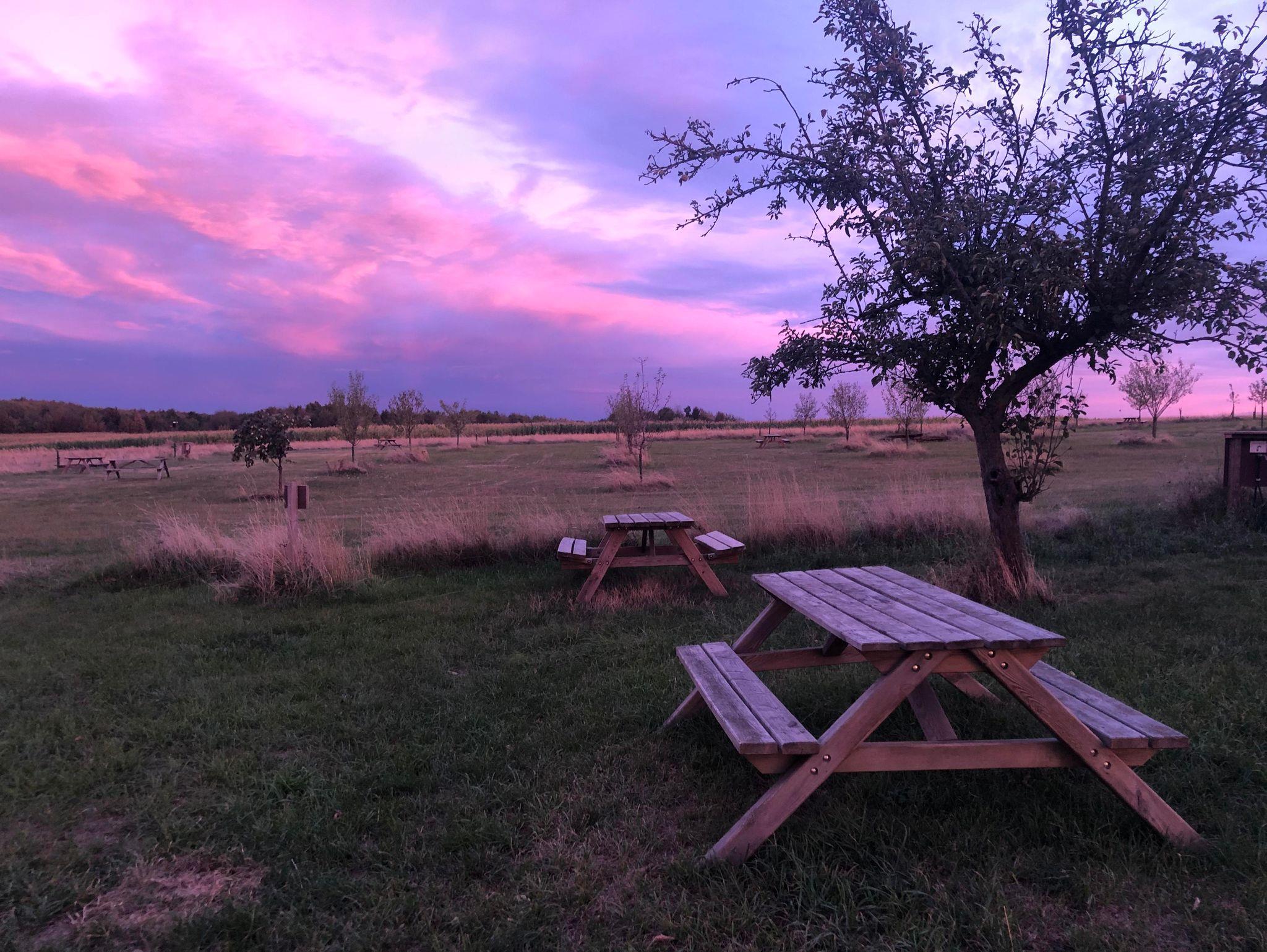 Die großzügige Zeltwiese ist autofrei und ausschließlich für Zelte reserviert. Hier schläfst du unter Apfelbäumen, wachst mit Vogelgezwitscher auf und genießt ein Campinggefühl wie früher: unkompliziert, frei und mitten im Grünen.