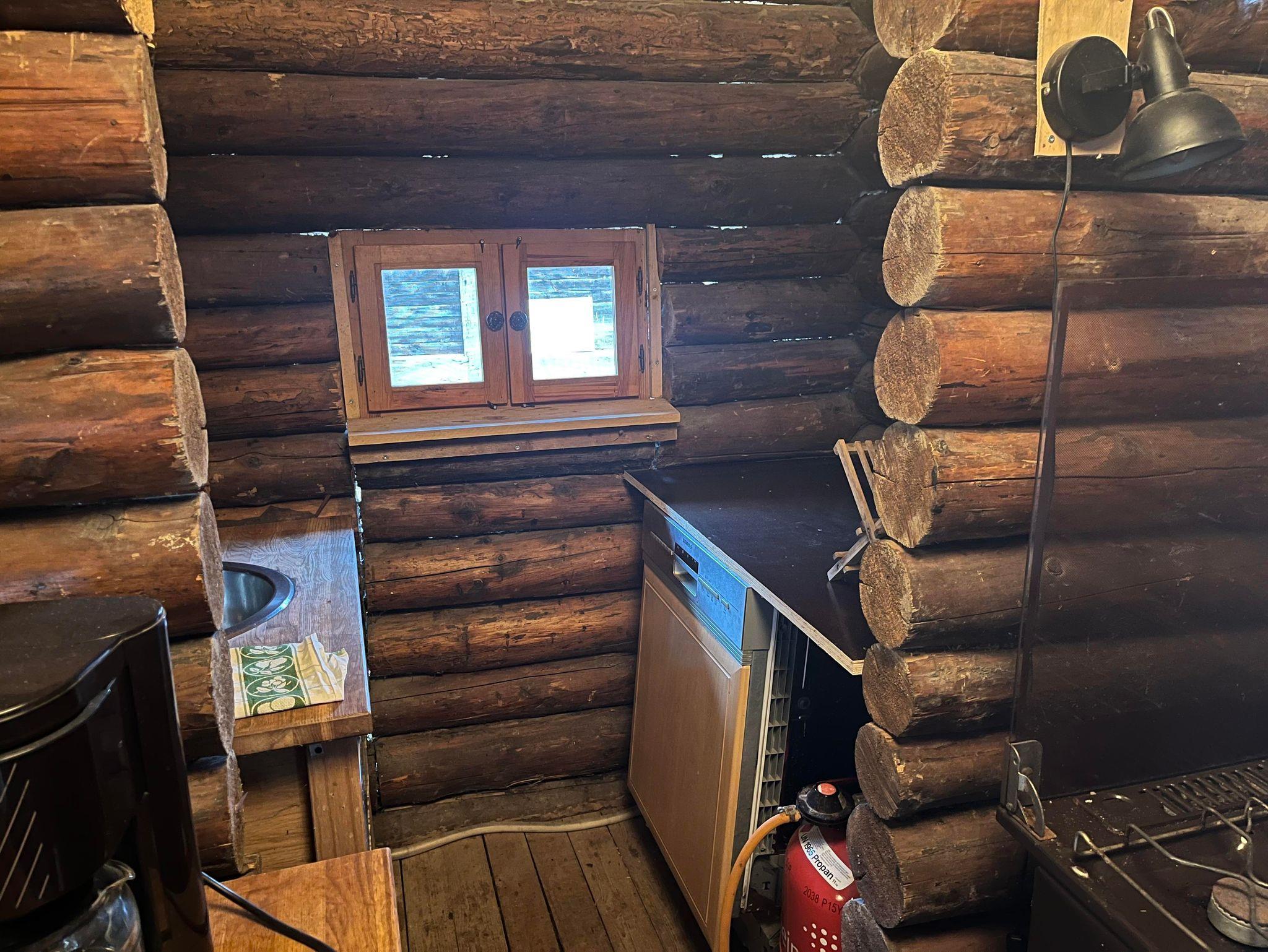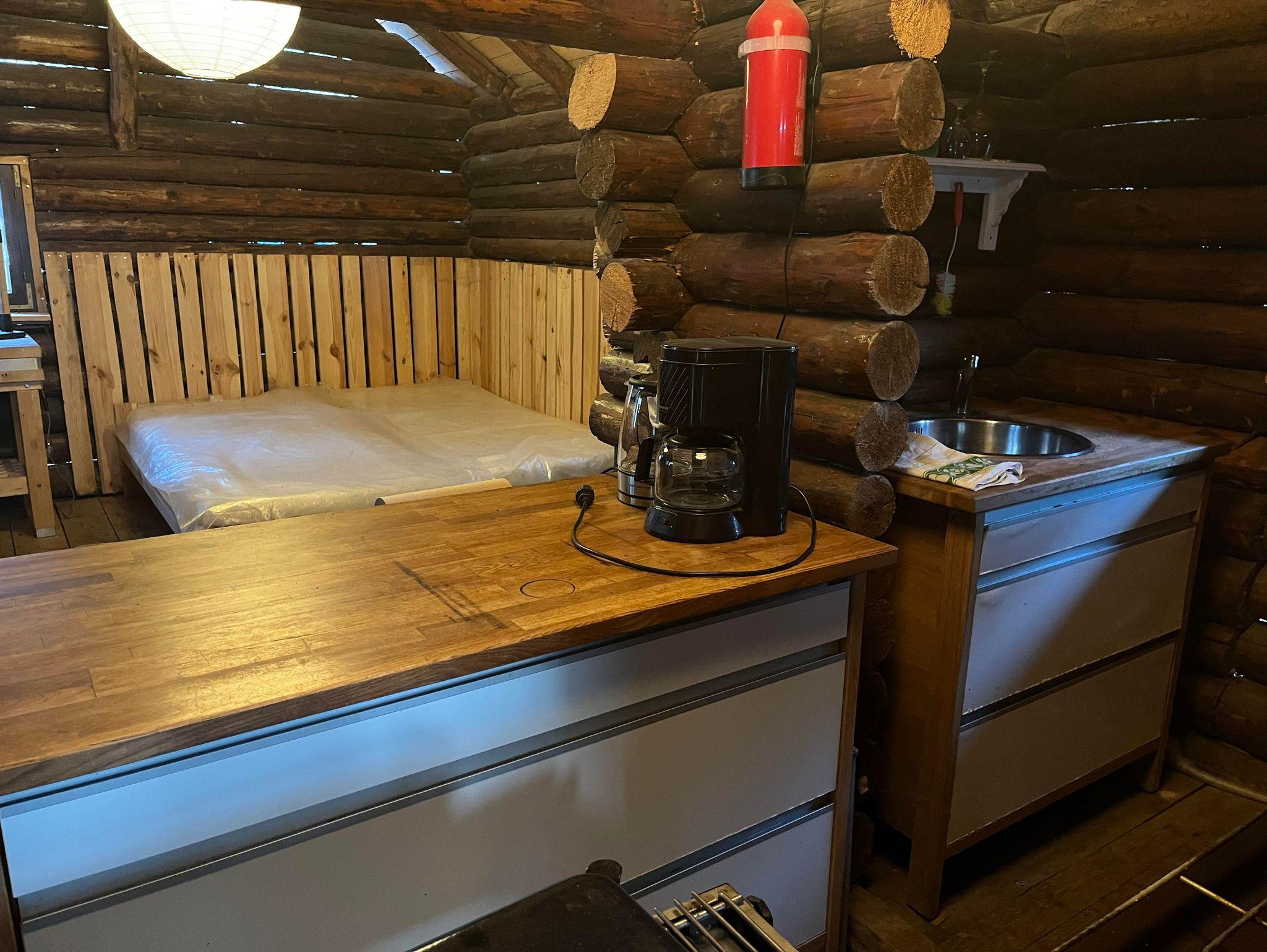 Die Kochnische ist mit Gasherd, Backofen, Geschirrspülbecken, Geschirrspülmaschine, Kühlschrank, Kaffeemaschine und weiteren Kochmöglichkeiten ausgestattet. Zusätzlich sorgt ein Holzofen für wohlige Wärme und gemütliche Hüttenatmosphäre, besonders an kühleren Tagen. Ein Radio steht ebenfalls zur Verfügung.