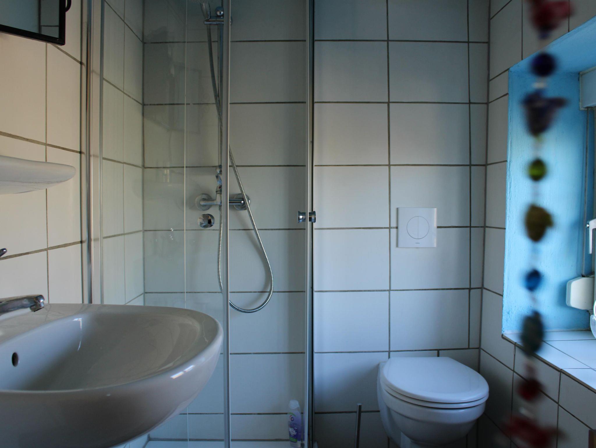 Ein eigenes Bad mit Dusche und WC steht dir direkt in der Ferienwohnung zur Verfügung. Die Nutzung der Waschmaschine ist ebenfalls möglich und besonders praktisch bei längeren Aufenthalten.