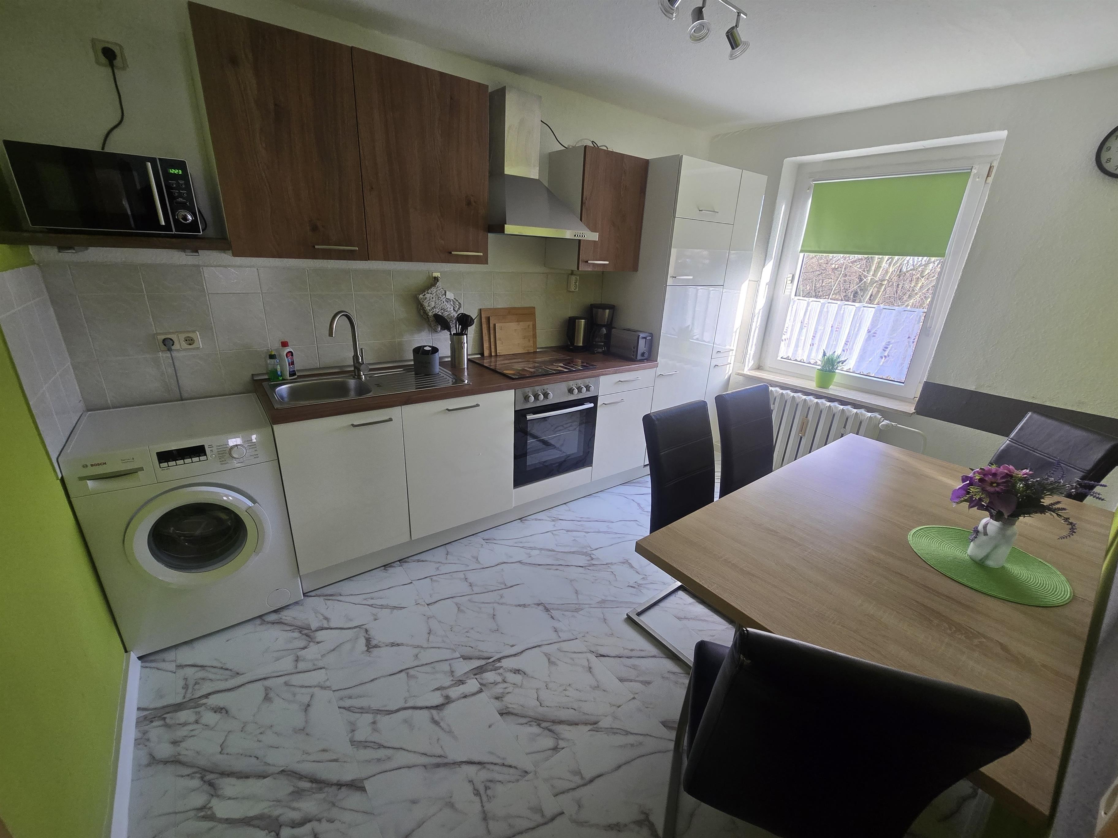 Die Küche ist voll ausgestattet.