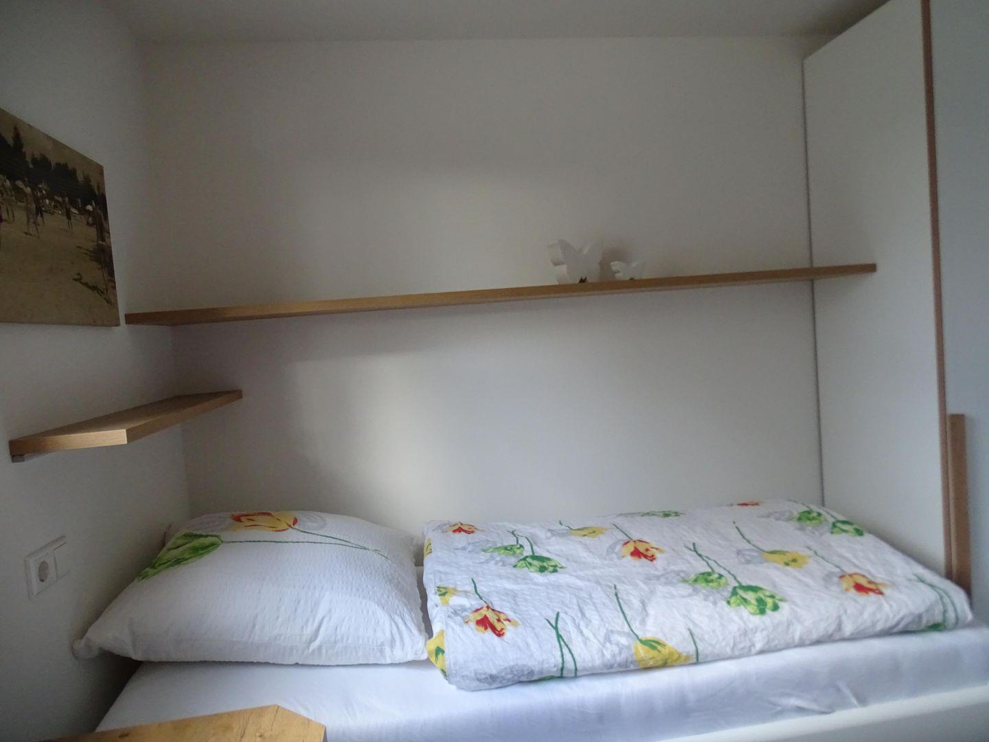 Die Ferienwohnung verfügt über ein einladendes Schlafzimmer mit einem komfortablen Bett sowie einem zusätzlichen Zustellbett, das auf Wunsch bereitgestellt werden kann. Das hell gestaltete Badezimmer ist mit einer Dusche und Wanne ausgestattet und garantiert Ihnen erholsame Momente nach einem aktiven Tag in der Natur. Zudem sind hochwertige Handtücher und Badetücher im Preis inbegriffen, damit Sie sich sofort wohlfühlen können.