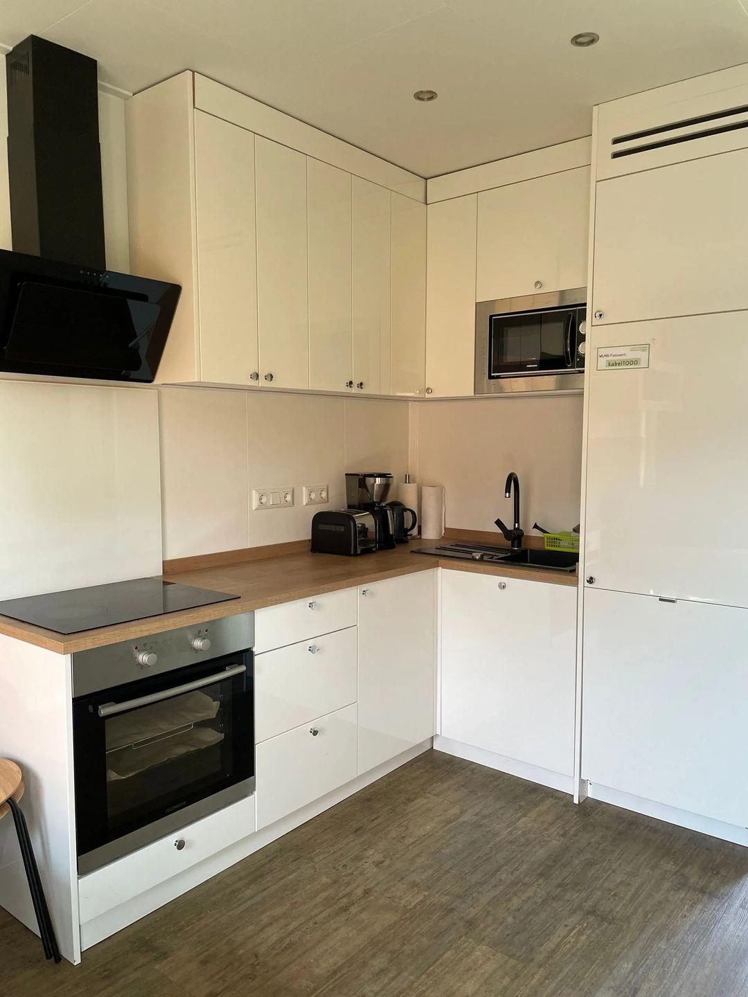Die großzügige offene Küche ist ideal für gesellige Runden. Sie ist komplett ausgestattet mit einem 4-Platten-Herd, Backofen, Kühlschrank mit Gefrierfach und sogar einer Spülmaschine. Hier können Sie einfach und bequem Ihre Lieblingsgerichte zubereiten, während der Essbereich genügend Platz für gemeinsame Mahlzeiten bietet. Nach einem köstlichen Essen laden das einladende Sofa und der Esstisch zum Verweilen und Genießen ein.