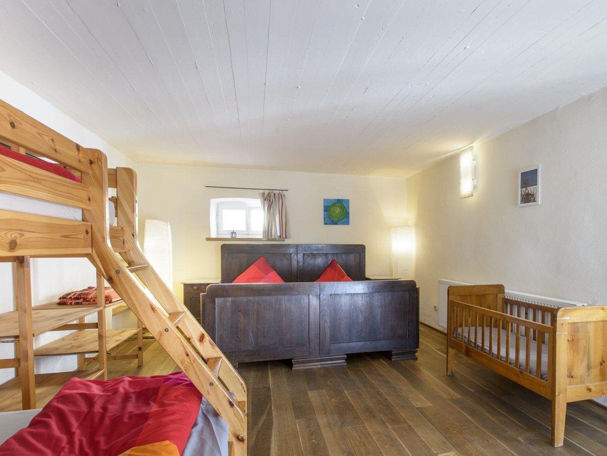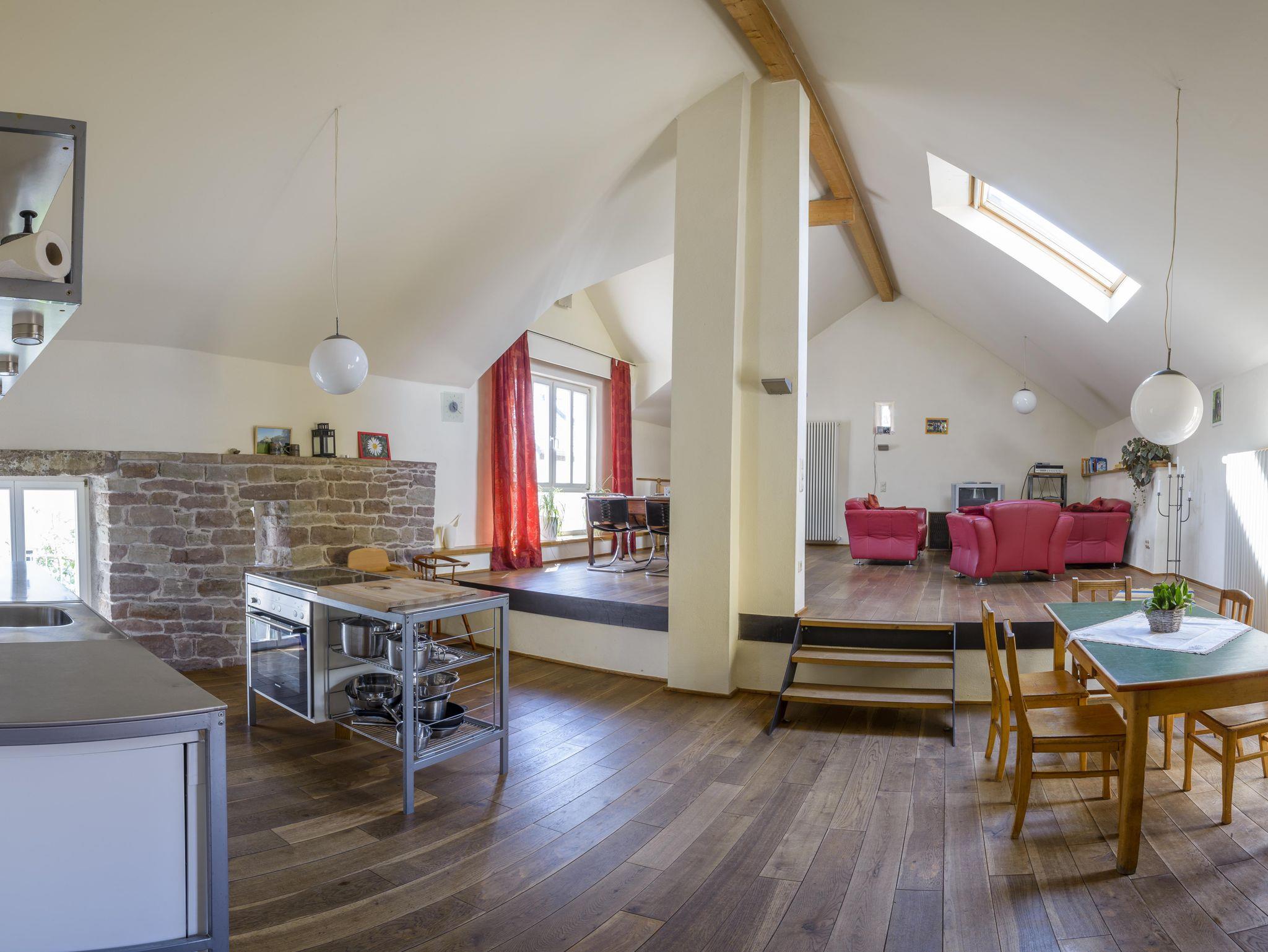 Die Ferienwohnung Wildrose für bis zu 7 Personen hat ihren ganz eigenen Charme: Mit direktem Blick auf den Hof seid ihr hier nah am Geschehen und dennoch wunderbar geborgen. Der offene Eingangsbereich führt direkt in den hellen, großzügigen Wohn-, Koch- und Essbereich mit gemütlichem Ofen – perfekt für gesellige Runden und entspannte Abende. Die Wohnung verfügt über ein Schlafzimmer mit Doppelbett und Etagenbett, dessen untere Liegefläche 1,40 m breit ist, sowie eine offene Schlafempore mit weiteren Schlafplätzen. Das Bad mit Badewanne sorgt für zusätzlichen Komfort und ein Kinderbett ist ebenfalls vorhanden. Ob ihr abends auf der offenen Empore die Sterne zählt oder im Innenhof am Feuer sitzt – hier findet jeder seinen Lieblingsmoment. Die Ferienwohnung Wildrose bietet den perfekten Rahmen für einen entspannten Familienurlaub mit Herz.