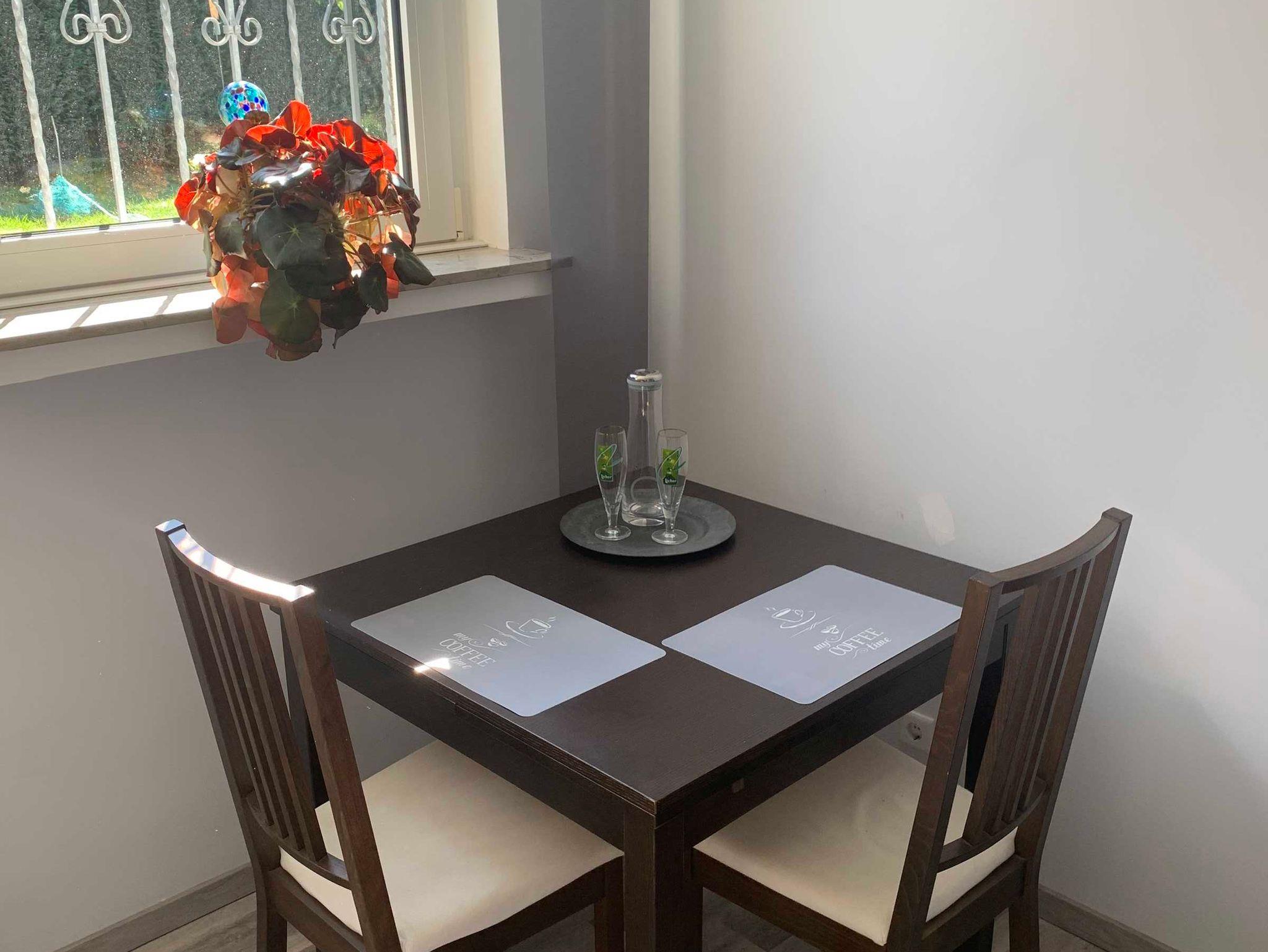 (ausziehbarer) Tisch mit Stühlen lädt zu Mahlzeiten, Lesen oder auch