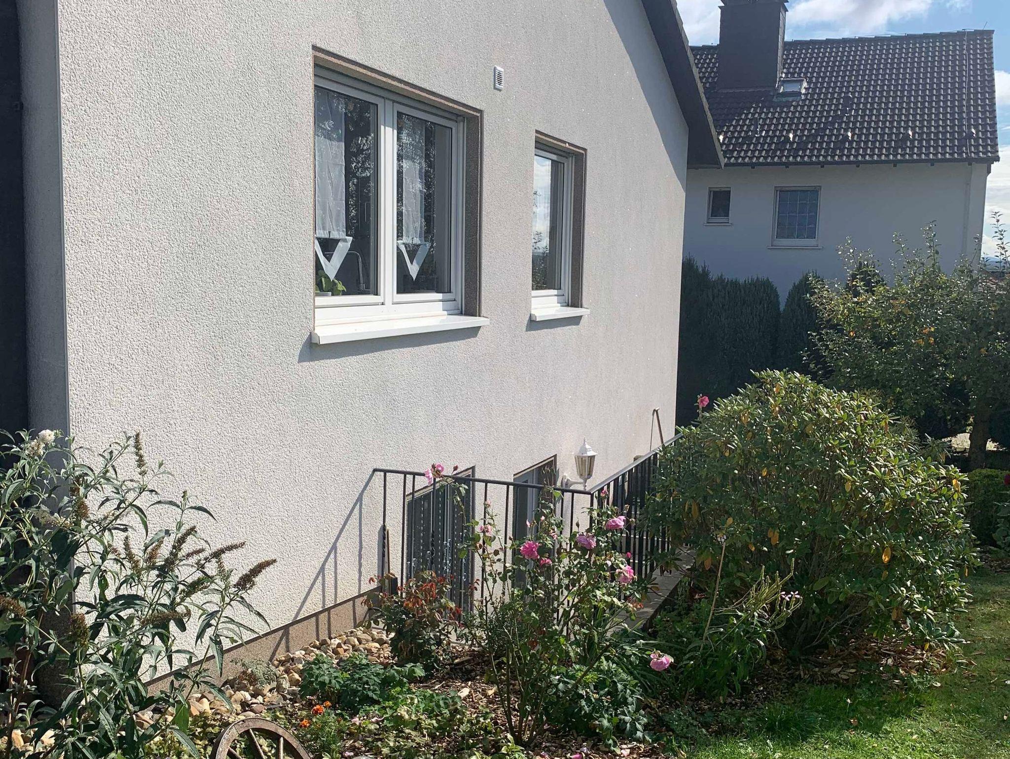 • Außenbereich: Ein separater Weg führt direkt zum Eingang der Einliegerwohnung. Auf dem großzügigen Rasen können Sie draußen auf einer Liege entspannen. Es stehen zudem zwei Gartenstühle und ein Tisch zur Verfügung.