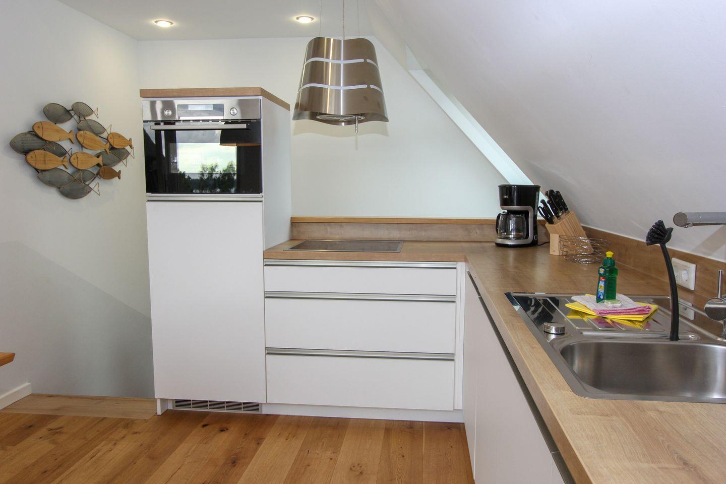 Die großzügige Einbauküche lädt zum gemeinsamen Kochen ein und bietet alles, was Sie für Ihre kulinarischen Kreationen benötigen. Im Wohnbereich erwartet Sie eine gemütliche Fernsehcouch, die zum Verweilen einlädt. Genießen Sie die frische Luft und den herrlichen Blick aufs Wasser von Ihrem großen Balkon aus, der ideal für entspannte Stunden ist.
