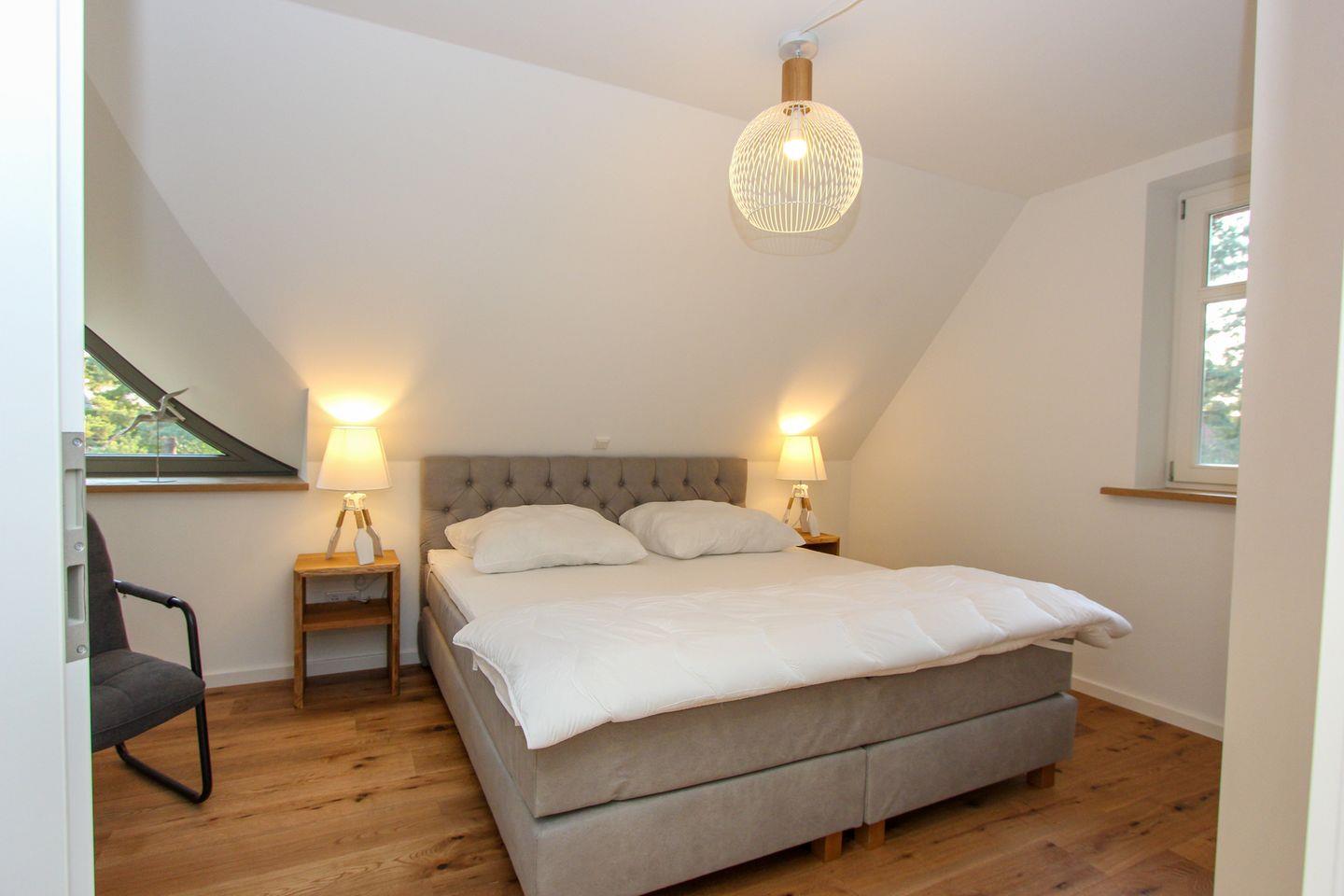 Die Ferienwohnung verfügt über zwei einladende Schlafzimmer, jeweils ausgestattet mit einem komfortablen Doppelbett und einem TV, sodass Sie sich nach einem erlebnisreichen Tag entspannen können. Das moderne Duschbad mit zusätzlicher Badewanne und Tageslicht sorgt für zusätzlichen Komfort.
