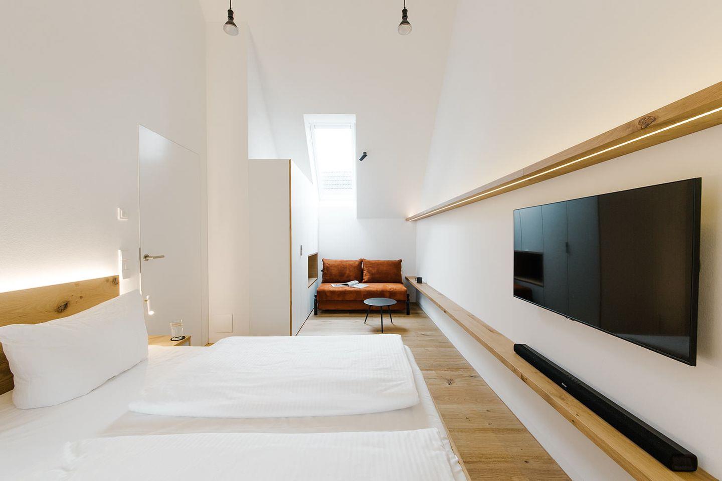 Beim Betreten werden Sie von der offenen Wohnküche begrüßt, die nahtlos in einen gemütlichen Wohnbereich mit Kamin und hochwertiger Soundanlage und TV übergeht. Hier können Sie entspannen, Filme aus der DVD-Sammlung ansehen oder einfach den Abend genießen. Im Erdgeschoss befindet sich außerdem eines der beiden Badezimmer mit ebenerdiger Dusche. Im Obergeschoss erwarten Sie zwei Schlafzimmer: Ein Familienzimmer mit einem großzügigen Doppelbett (180×200), einer Schlafcouch (140×200) und einem eigenen TV – ein perfektes Refugium für Eltern und Kinder. Ein weiteres Schlafzimmer mit Doppelbett (160×200) bietet Platz für erholsame Nächte. Ebenfalls im Obergeschoss gelegen ist das zweite Badezimmer mit Dusche. Genießen Sie die frische Ostseeluft auf der Terrasse oder im Garten des Filmhauses. Hier können die Kinder spielen, während die Erwachsenen sich entspannen. Ein besonderes Highlight ist die Gemeinschaftssauna auf dem Grundstück, die eigenständig über einen Münzautomaten gesteuert werden kann. Perfekt, um nach einem Tag voller Aktivitäten zu entspannen und neue Energie zu tanken.