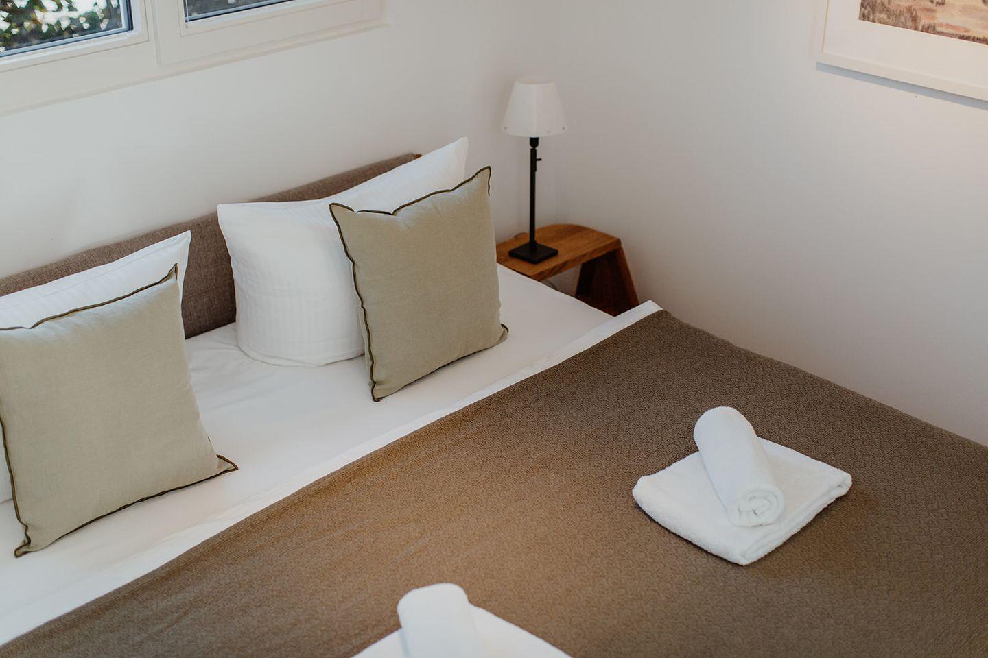 Eine abteilbare Schlafnische ermöglicht den Raum im Raum und lässt sich auch verdunkeln. Das großzügige Bad lädt zum Duschen ein.