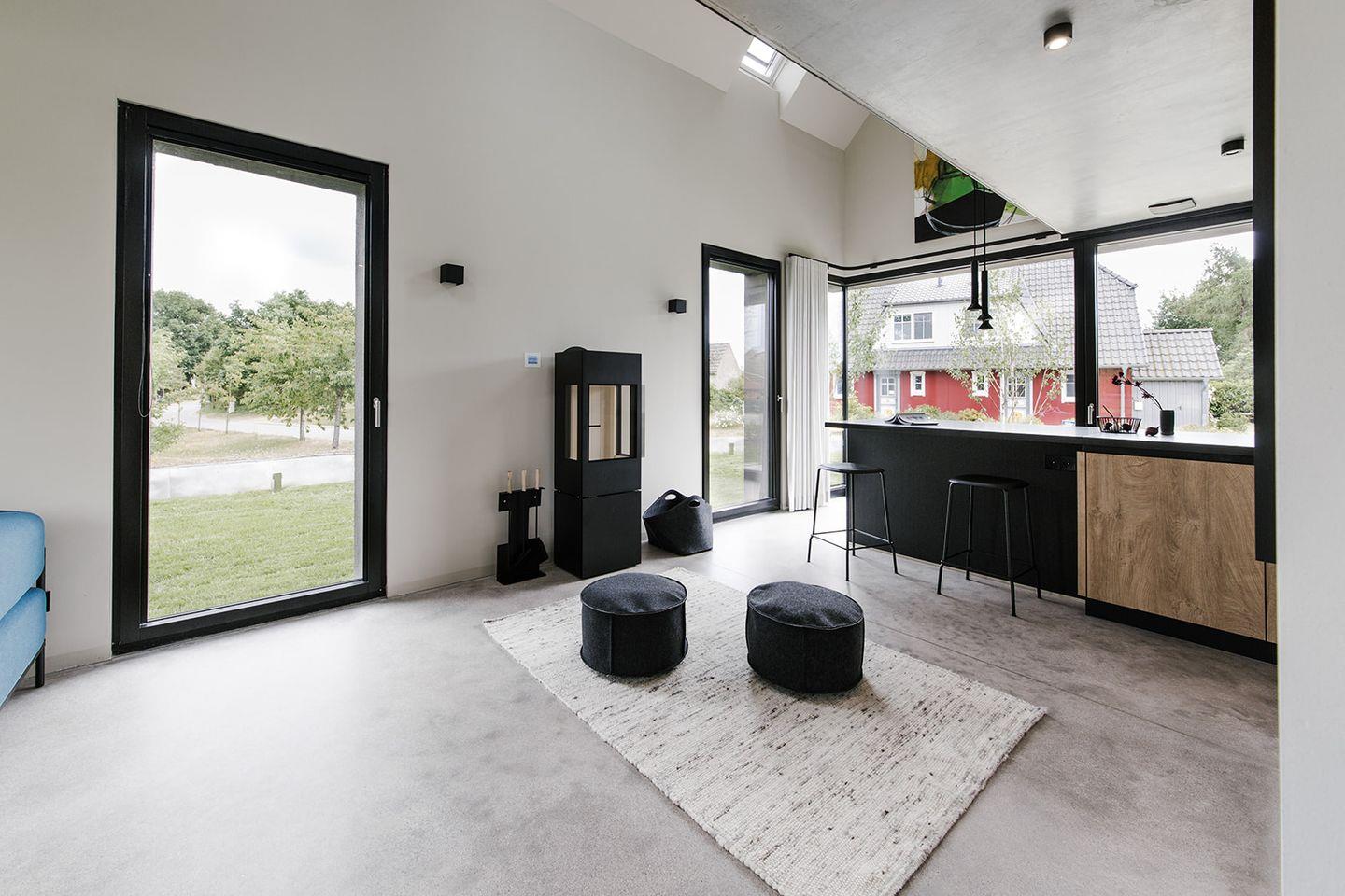 DAS.VIERTE präsentiert einen offenen Wohn- und Kochbereich mit einem einladenden Kamin und einer hochwertigen Soundbox. Die Wände des Hauses sind mit faszinierenden Kunstwerken von der Dresdner Künstlerin Anke Ewers geschmückt, die eine inspirative Atmosphäre schaffen. Im Erdgeschoss befindet sich außerdem ein Badezimmer mit Dusche für Ihren Komfort. Das Obergeschoss verfügt über zwei Schlafzimmer mit komfortablen Doppelbetten (140×200) und bieten einen Galerieblick in den Wohnbereich, umgeben von der einzigartigen Kunst, die das Haus schmückt. Genießen Sie die Sonne auf der Südterrasse und erleben Sie die Ruhe und Inspiration der Umgebung. Das Kunsthaus DAS.VIERTE bietet eine einladende Atmosphäre im Freien, umgeben von der Schönheit der Natur. Ein weiteres Highlight ist die Gemeinschaftssauna auf dem Grundstück, die eigenständig über einen Münzautomaten gesteuert werden kann. Entspannen Sie sich und gönnen Sie sich eine wohltuende Auszeit in der Sauna.