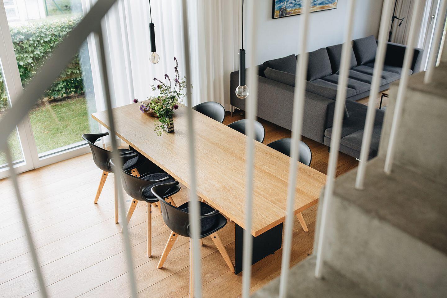 Die offene und top ausgestattete Küche lädt zum gemeinsamen Kochen und Tafeln am großen Holztisch ein. Im angrenzenden Wohnbereich können Sie es sich gemütlich machen. Hier spendet der Kamin in den kalten Jahreszeiten angenehme Wärme und schafft eine besinnliche Stimmung. Während Sie in diesen Bereichen gesellig beisammen sein können, bieten die großzügigen Schlafzimmer im Obergeschoss und die Bibliothek im Erdgeschoss ideale Rückzugsorte. Mit bis zu 4 Personen können Sie das Ferienhaus Darß mieten und darin Ihren Urlaub verbringen. Zur besonderen Ausstattung gehört die Sauna im Masterbad mit Badewanne, die für Leib und Seele gleichermaßen gut ist. Das Ferienhaus auf dem Darß ist somit auch der perfekte Ort für Ihr individuelles Verwöhnprogramm!