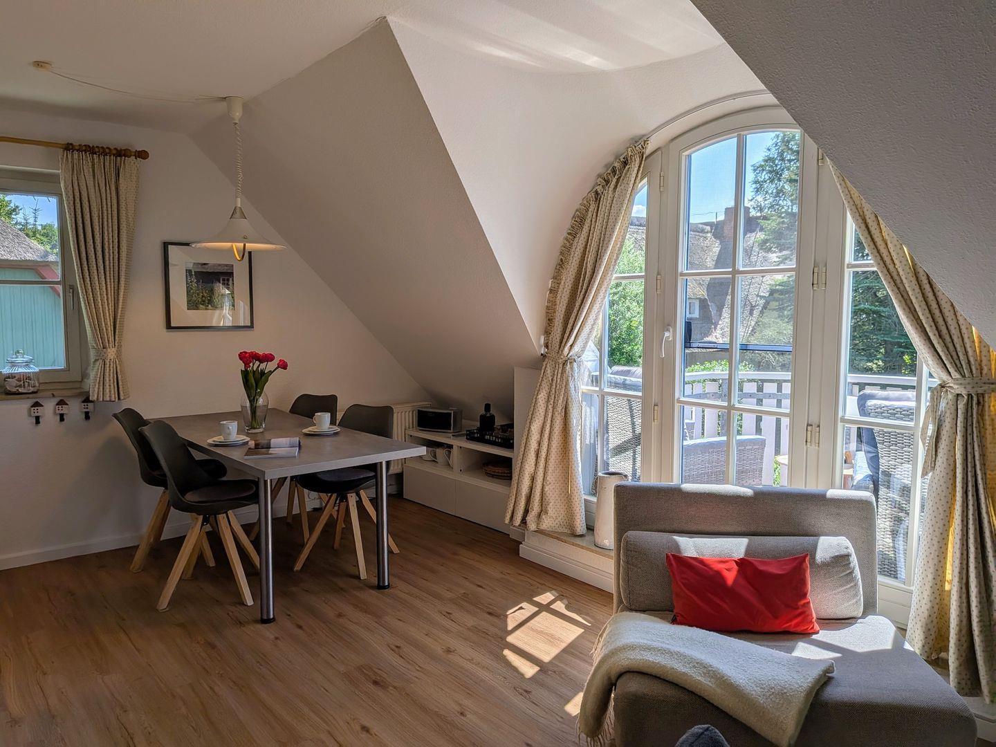 Die Wohnung "Sünnenkieker" im "Boddenquartett" liegt an einer ruhigen Seitenstraße in unmittelbarer Nähe zur