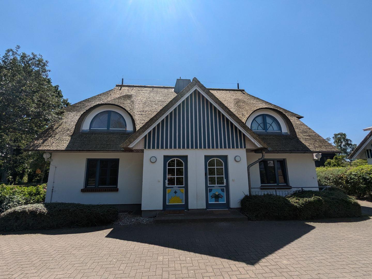 "Darßer Arche" im Wiecker Ortskern. Von Mai bis Oktober ( jeden Mittwoch u. Samstag) können Sie über den Bio- und Regionalmarkt schlendern. Zum Bodden spaziert man ca 300 m und schon steht man auf dem Deich. Von hier kann man seinen Blick über den Bodden zum Nachbarörtchen Bliesenrade schweifen lassen oder fährt mit dem Rad nach Born. Wer nicht laufen oder radeln mag, genießt die "Sünn" auf einem der Balkone.