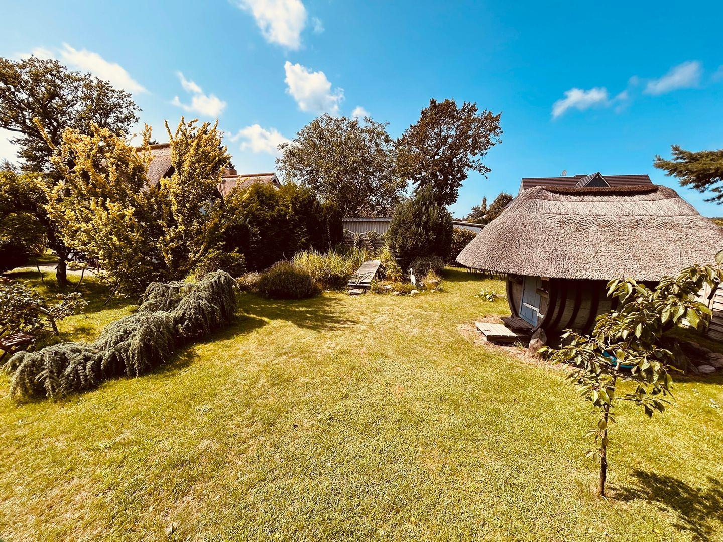 Lassen Sie den Tag bei einer gemütlichen Tasse Tee und dem zauberhaften Blick auf den großen Gartenteich entspannt ausklingen. Unsere ruhigen Sitzplätze und Sonnenliegen laden zu romantischen Stunden zu Zweit ein und runden Ihren Urlaub an der Ostsee ab.