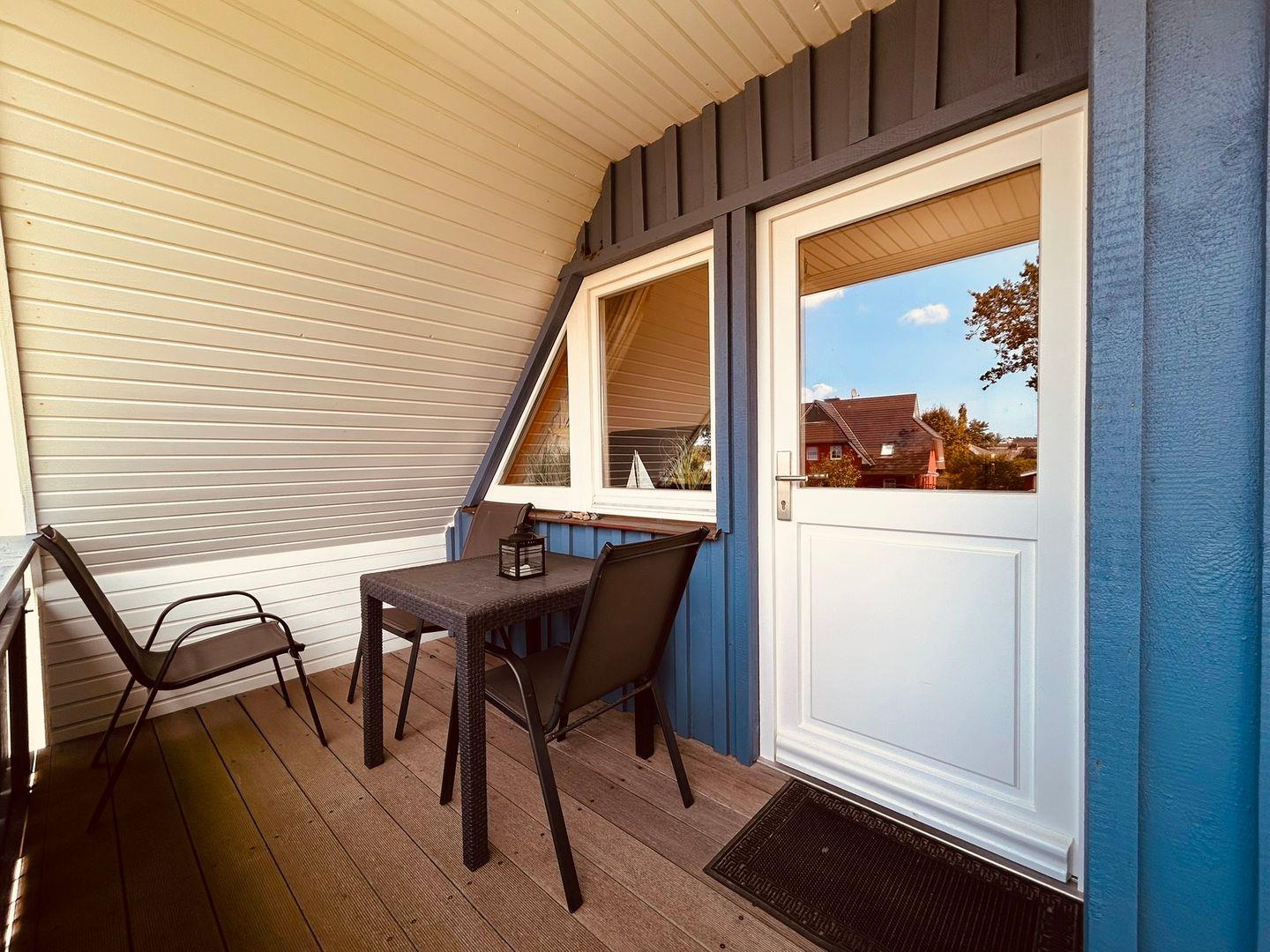 * möblierter Balkon mit einem wunderschönen Ausblick auf unseren Gartenteich