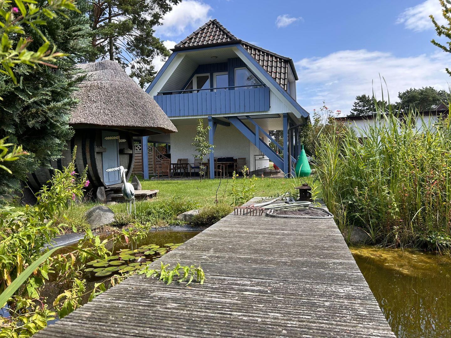 Viel Platz auf unserem Grundstück bietet Kindern die Möglichkeit zum Spielen, während Sie den Sonnenuntergang bei einer Tasse Tee und dem zauberhaftem Blick auf den großen Gartenteich entspannt genießen können. Unsere ruhigen Sitzplätze und Sonnenliegen laden zu romantischen Stunden zu Zweit ein und runden Ihren Urlaub an der Ostsee ab. Ja, bei uns lassen sich die Ruhe und Einzigartigkeit der Boddenlandschaft entspannt genießen.