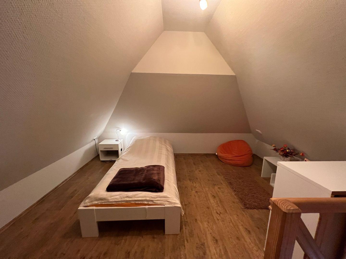 * gemütliches Einzelbett (0,90m x 2,00m), Kommode und ausreichend Raum