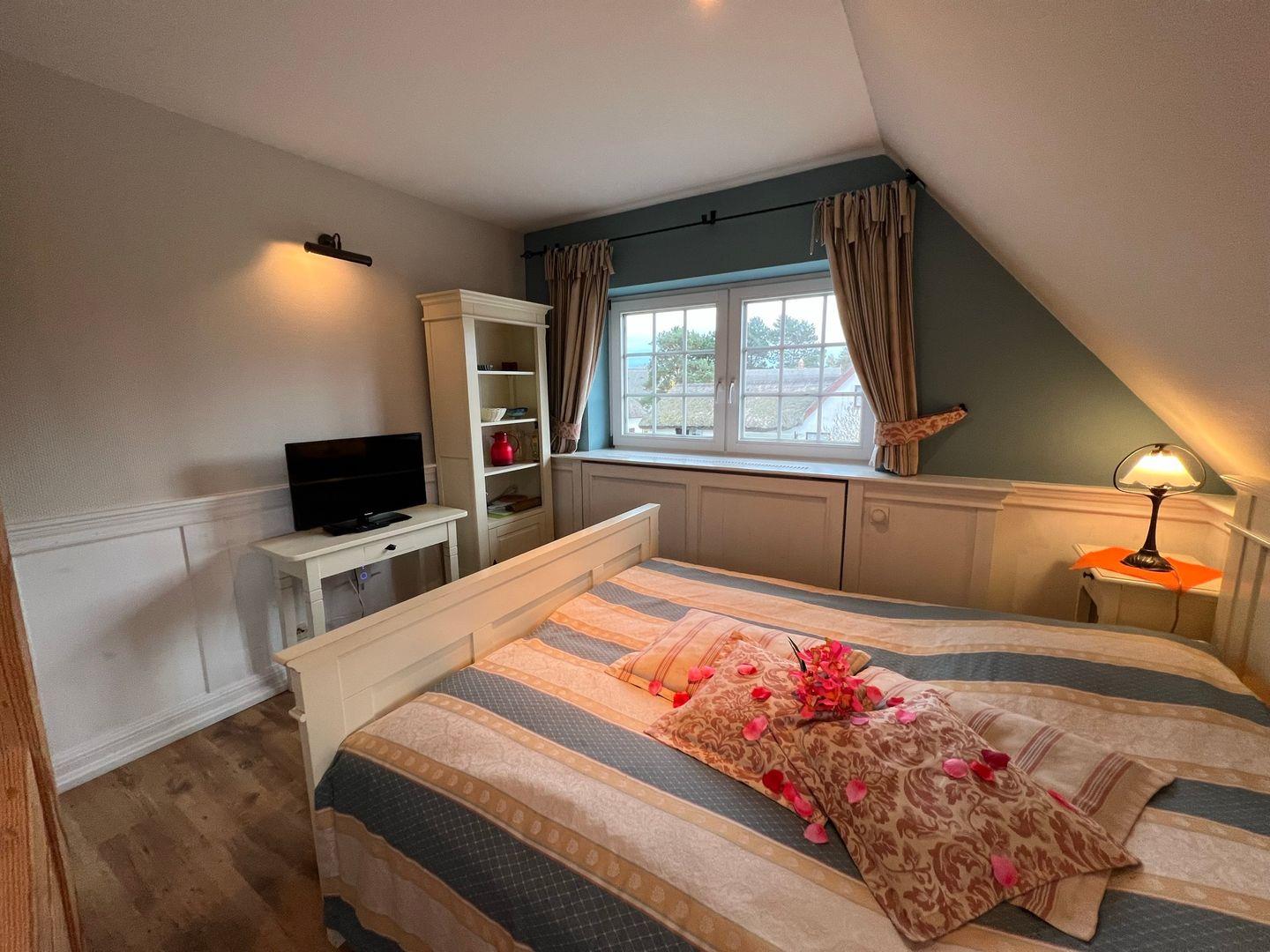 * gemütliches Doppelbett (1,80m x 2,00m) und Kleiderschrank