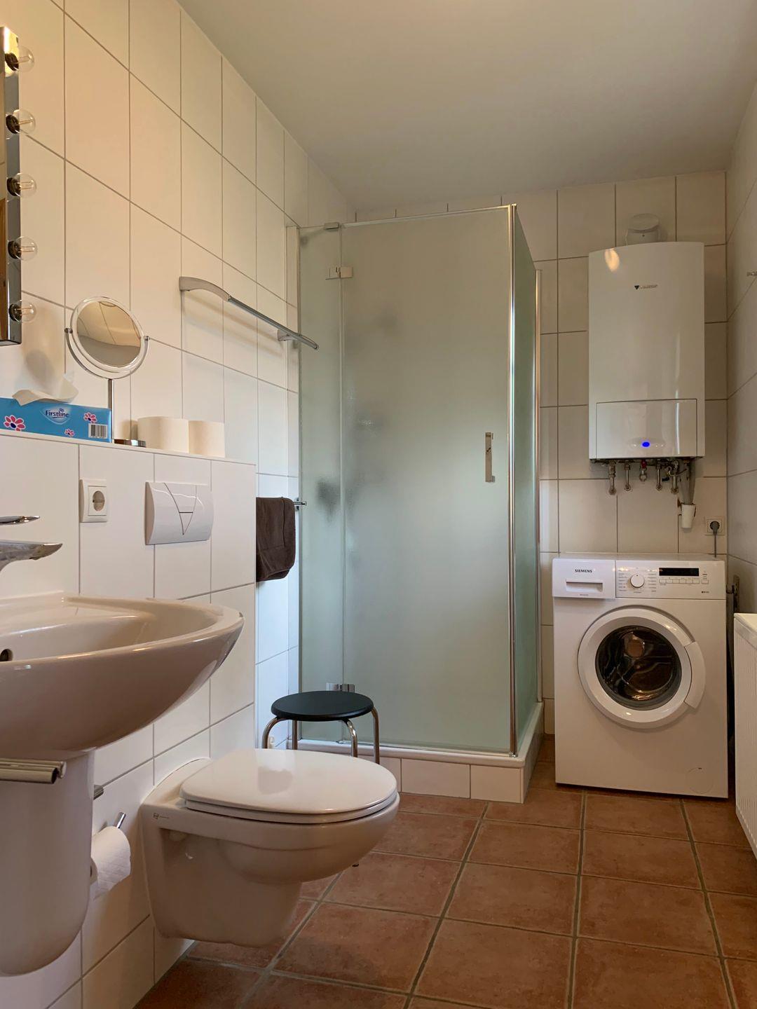 Im Erdgeschoss stehen Ihnen ein großzügiges Duschbad, eine komfortable Küche mit Geschirrspüler und Gefrierschrank, sowie das, durch einen Kamin von der Küche getrennte, Wohnzimmer zur Verfügung.