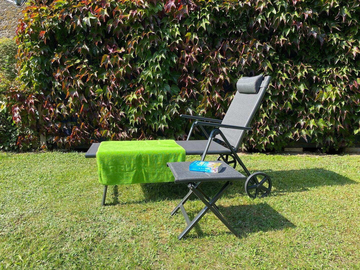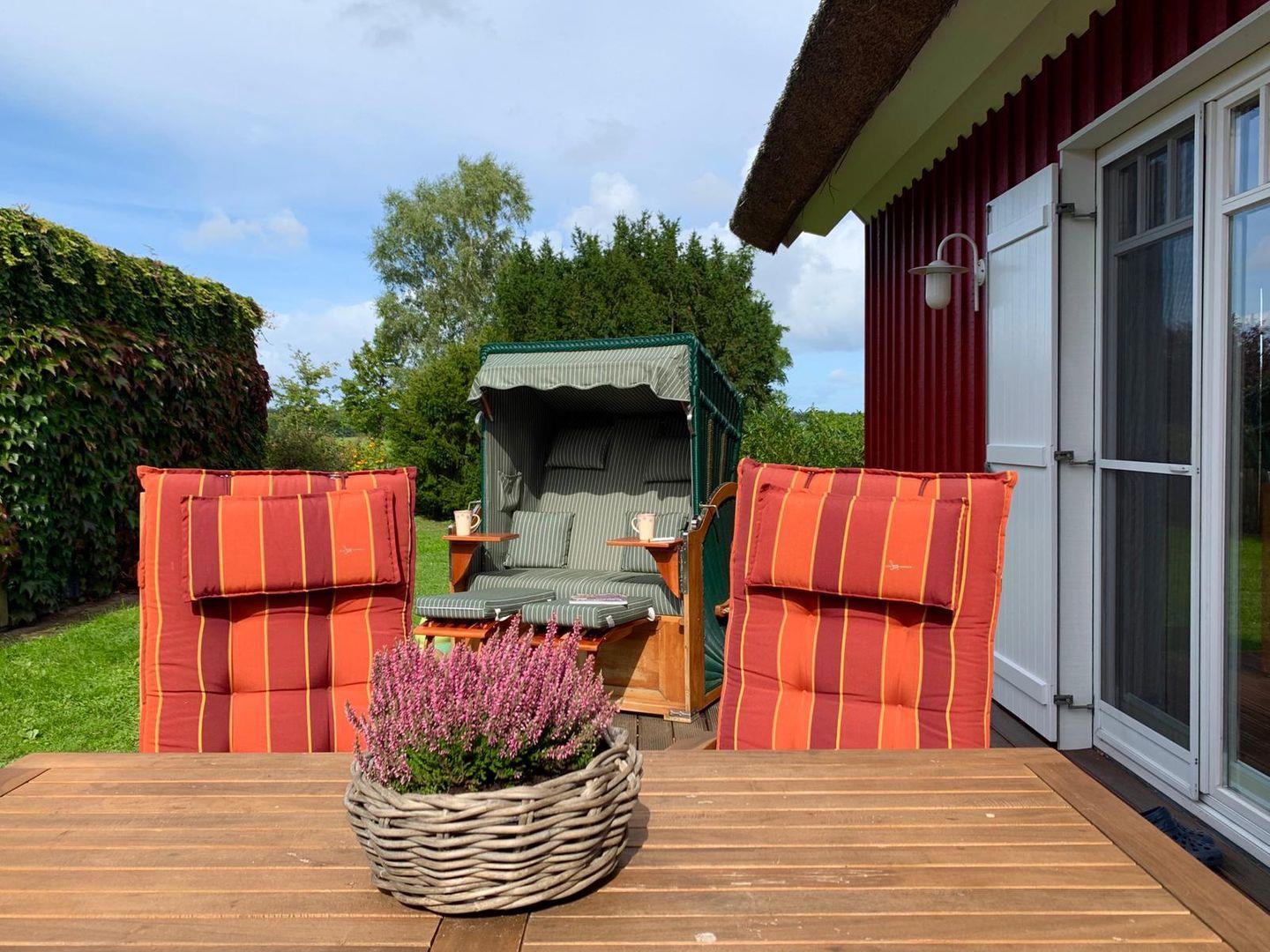 Die möblierte Terrasse, mit Strandkorb lädt zum verweilen ein.