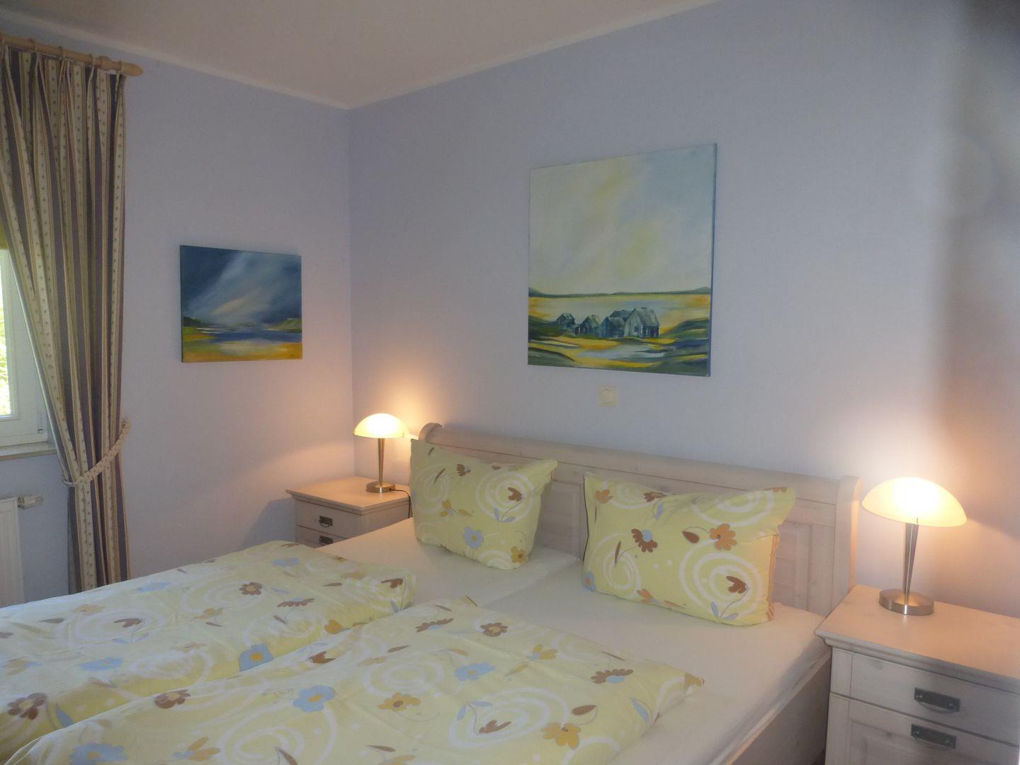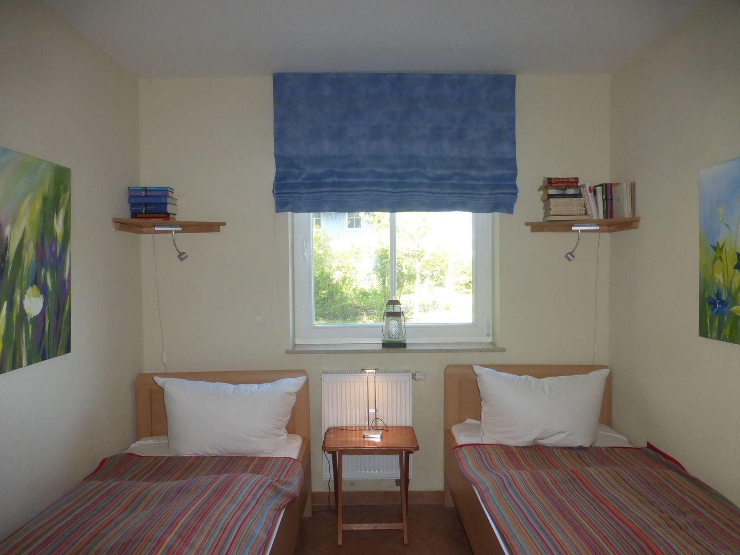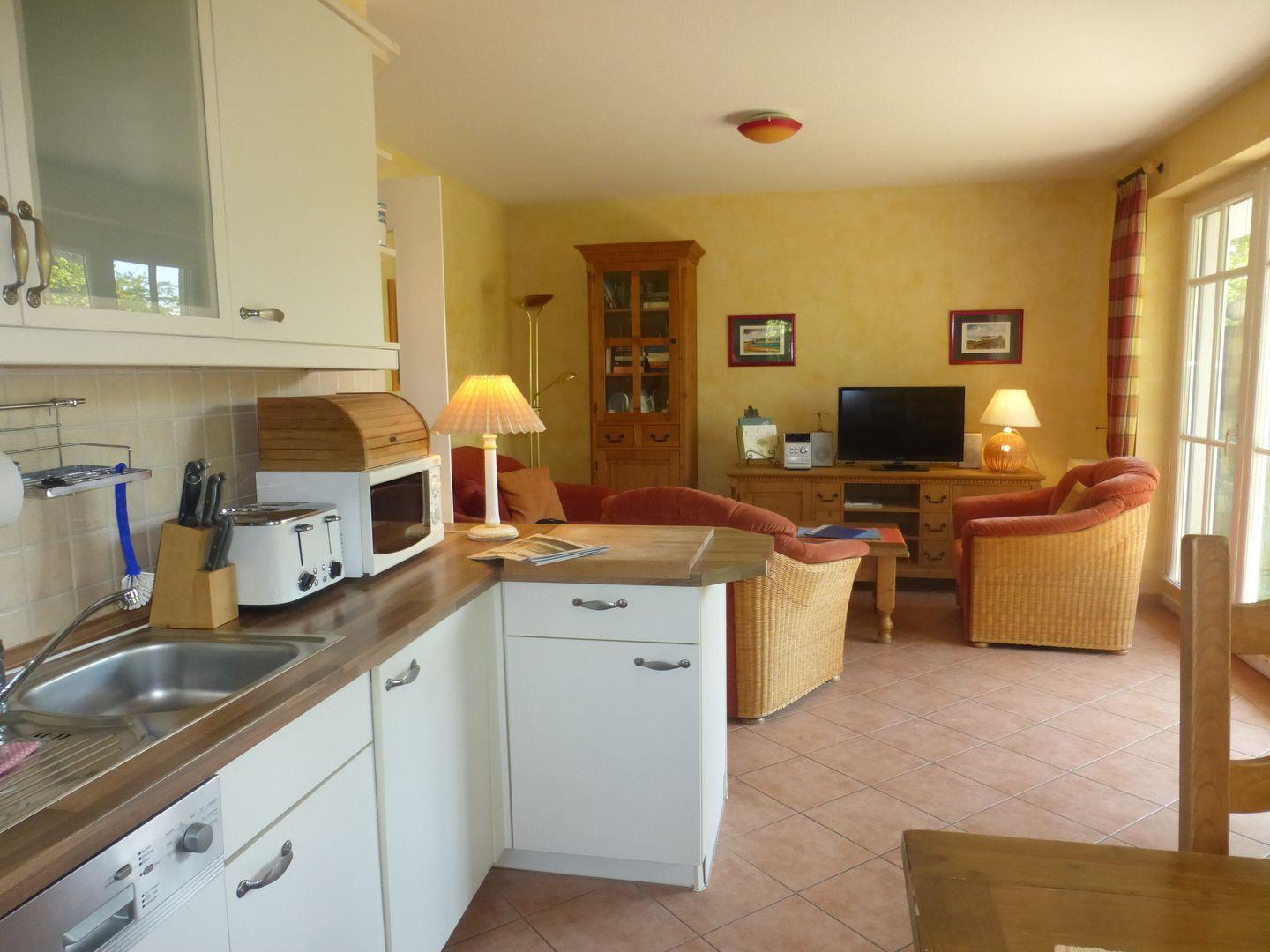 Unsere 60 m² große Nichtraucher-Ferienwohnung "Boddenbrise" liegt im Erdgeschoss eines Reet gedackten Hauses in der Residenz am Haferland". Die Wohnung bietet bequem Platz für bis zu vier Personen. Sie ist komplett umgeben von ca. 400 qm Grünflache. Die Badestelle am Bodden ist zu Fuß in ca. 3 min zu erreichen. Zum Ostseestrand sind es ca. 4 km. Die Terasse im Westen wird ab Mittag von der Sonne beschienen. Die Schlafzimmer liegen gut gekühlt im Norden. Die Wohnung wurde professionell neu im Landhausstil eingerichtet. Für Unterhaltung sorgen: WLAN, Radio, CD Player, Sat-TV, DVD Player. Wer es ruhiger mag, greift zu einem der zahlreichen, interessanten Bücher. Gesellschaftsspiele lassen keine Langeweile aufgommen. Die Küchenzeile ist mit 4 Zonen Ceranfeld, Backofen, Mikrowelle, Kaffemaschine, 4 Scheiben-Toaster, Wasserkocher, Kühl/Gefrierkomination und Geschirrspüler ausgestattet. Ein Safe im Flur sowie ein Fön im Badezimmer gehören ebenfalls zur Ausstattung. Im Mietpreis enthalten ist die Nutzung des PKW Parkplatzes, des Fahrradschuppens und des Saunapavillons. Die drei verschiedenen Saunen stehen nach Voranmeldung dreimal in der Woche (Mi, Fr, Sa) zur Verfügung. Im Pavillon befinden sich auch Waschmaschine und Trockner, die gegen Gebühr genutzt werden können. Falls Sie mit dem Fahrrad anreisen, ist natürlich eine Unterstellmöglichkeit vorhanden. Diese ist abschließbar und für alle Feriengäste benutzbar.