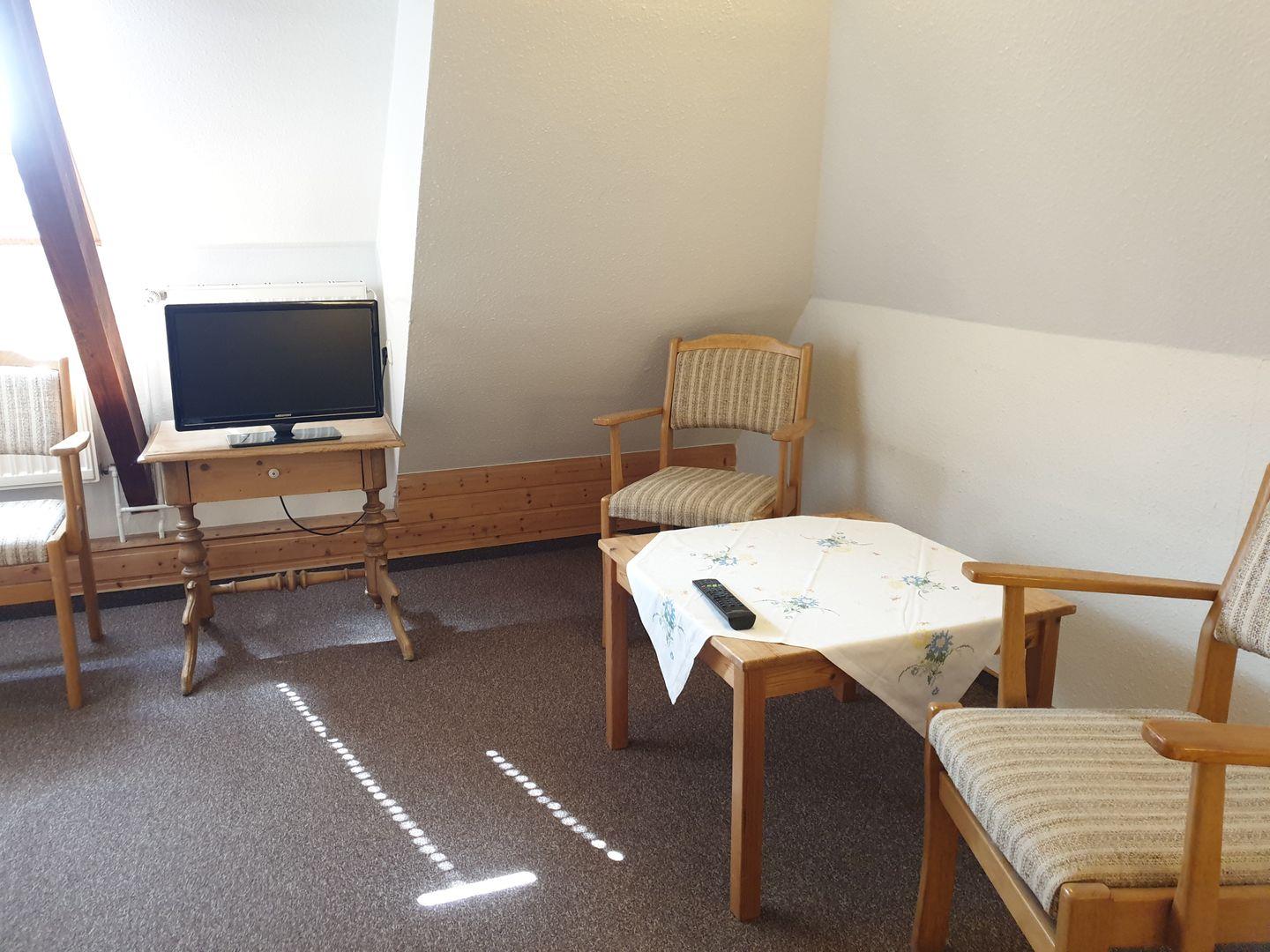 Über eine Innentreppe erreichen Sie das Dachgeschoss ca 20 m² mit zwei Schlafzimmern mit Doppelbett und einen Einzelbett.