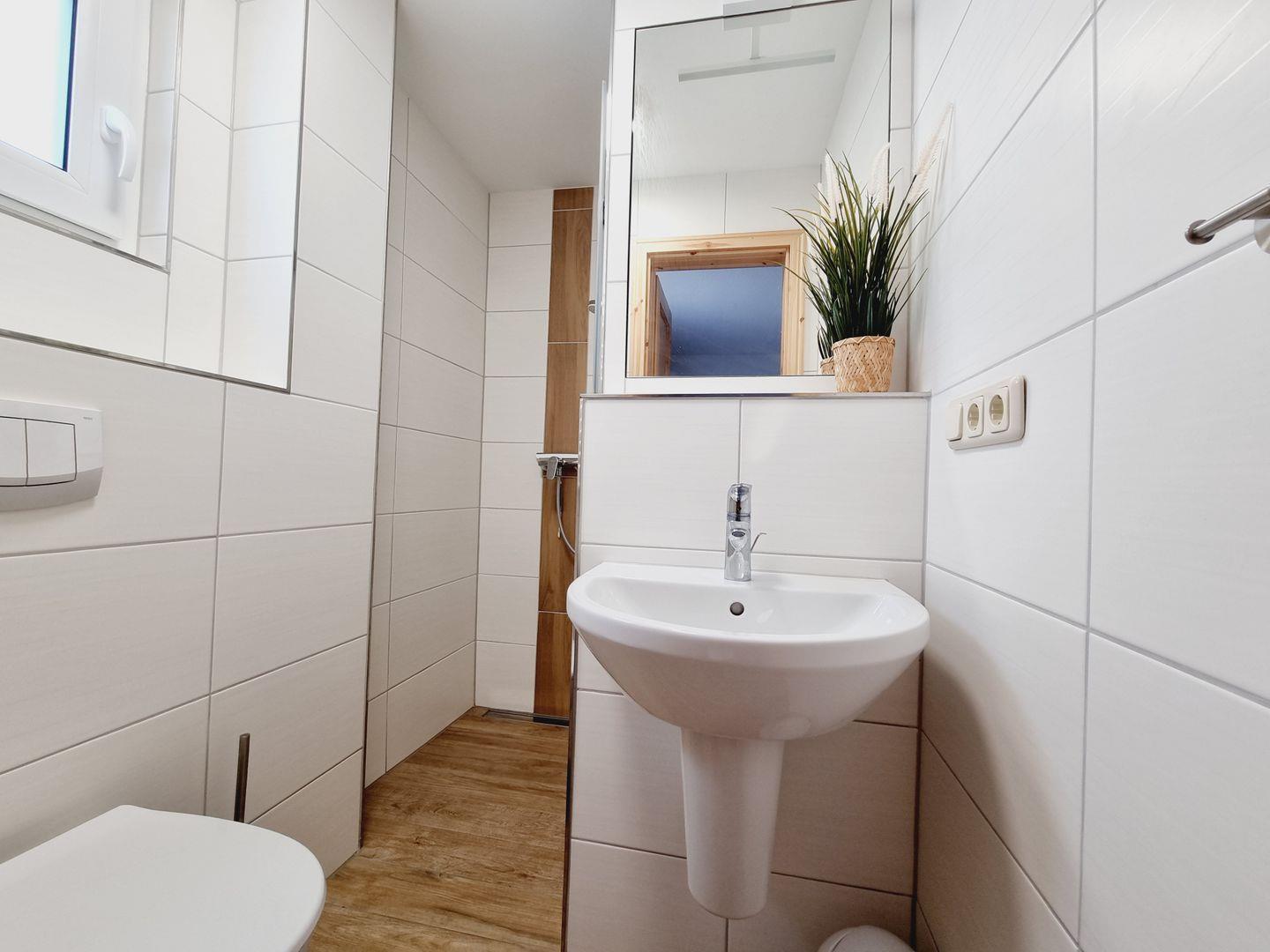 Das gemütliche Doppelzimmer mit Bad im Erdgeschoss nahe dem Nationalpark Vorpommersche Boddenlandschaft bietet modernen Komfort, verfügt über einen Flachbild-TV und kostenfreies WLAN. Gemeinschaftlich steht Ihnen eine Küche mit Kochzeile, Kaffeemaschine, Toaster, Wasserkocher und einem Kühlschrank zur Verfügung.