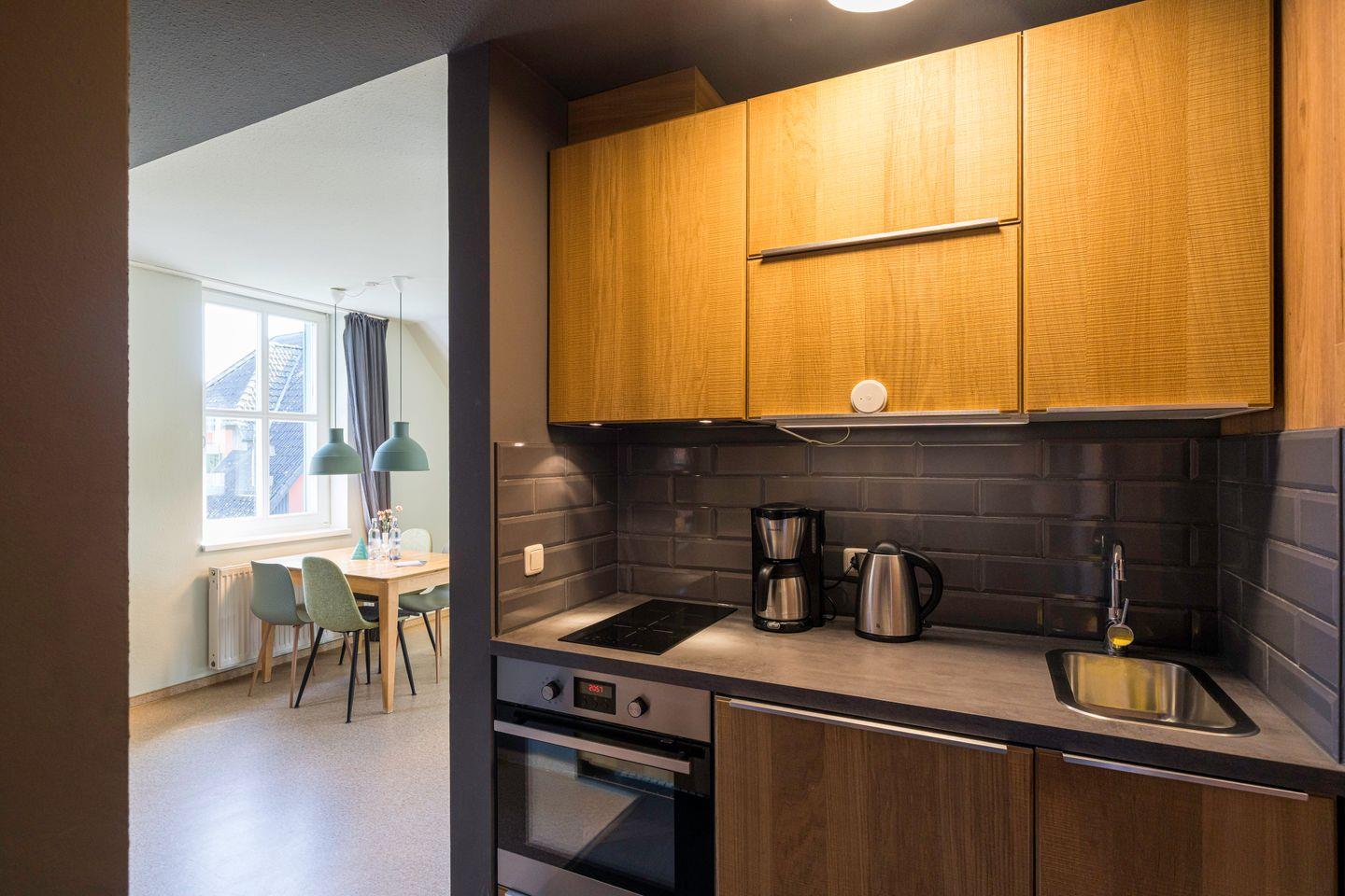 Auf dem Hof bietet eine stylische Sauna mit Ruheraum und Dusche einen besonderen Erholungsfaktor. Auch der gemeinschaftliche Garten mit Grillplatz, Schaukel und Tischtennisplatte sorgt für gesellige Stunden. Damit sich die Unterkunft perfekt für Familien eignet, stehen zudem ein Kinderbett und ein Hochstuhl bereit. Ein überdachter Fahrradstellplatz und ein PKW-Stellplatz sorgen für zusätzlichen Komfort. Eine wunderbare Unterkunft, die Ästhetik, Funktionalität und Erholung perfekt vereint.
