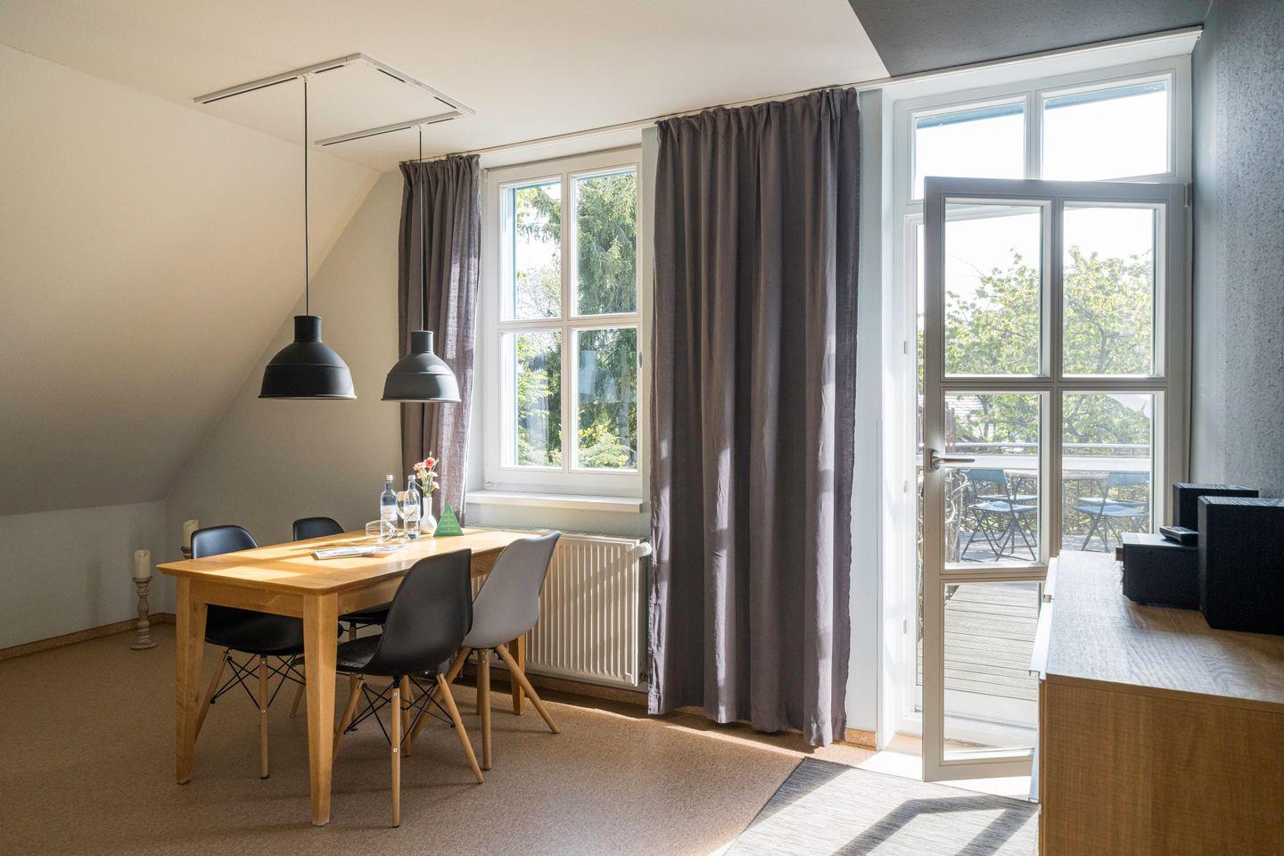 In idyllischer und ruhiger Umgebung gelegen, bietet die Ferienwohnung einen idealen Ausgangspunkt für Naturliebhaber und Aktivurlauber. Das nahe gelegene Rad- und Wanderwegenetz erschließt die schönsten Ecken der Region: Es führt entlang des Stroms zu den charmanten Ostseebädern, durch den Darßer Urwald bis zum unberührten Weststrand oder entlang des malerischen Boddens bis nach Born und weiter nach Ahrenshoop. Trotz der naturnahen Lage müssen auf Annehmlichkeiten nicht verzichtet werden. Restaurants und Cafés sind bequem zu Fuß erreichbar und laden zu genussvollen Momenten ein. Eine perfekte Kombination aus Erholung, Bewegung und kulinarischem Genuss inmitten der faszinierenden Landschaft auf Fischland-Darß-Zingst.