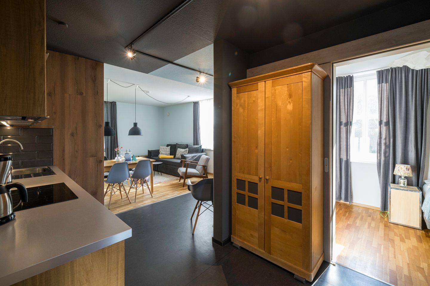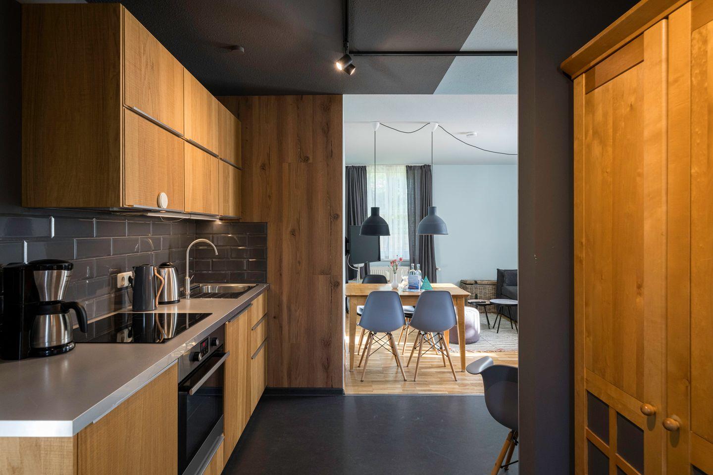 Die barrierefreie Erdgeschosswohnung eignet sich für Menschen mit eingeschränkter Mobilität und bietet Komfort in einem modernen, puristischen skandinavischen Design. Mit einem harmonischen Farbkonzept und einer durchdachten Raumgestaltung lädt die Wohnung zu einem erholsamen Aufenthalt ein. Sie verfügt über ein Schlafzimmer mit zwei getrennten Betten, ein Wohnzimmer mit einem Schlafsofa, eine offene Küchenzeile und ein modernes, rollstuhlgeeignetes Bad. Die angrenzende Terrasse bietet am Morgen sonnige Stunden und lädt zum entspannten Start in den Tag ein.