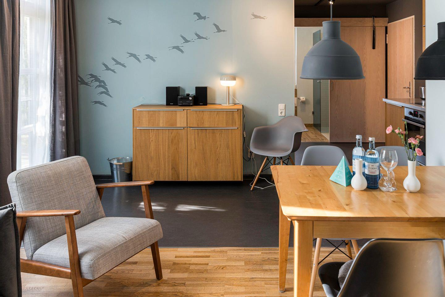 In ruhiger und malerischer Umgebung gelegen, ist die Ferienwohnung ideal für Natur- und Aktivurlauber. Das Rad- und Wanderwegenetz, das direkt vor der Tür beginnt, führt entlang des Stroms zu den Ostseebädern, durch den faszinierenden Darßer Urwald bis zum Weststrand oder entlang des Boddens nach Born, Ahrenshoop und weiter. Dennoch müssen auf Komfort und Kulinarik nicht verzichtet werden. In fußläufiger Entfernung befinden sich gemütliche Restaurants, Cafés, der Hafen und etwas weiter das Nationalparkzentrum, das spannende Einblicke in die Flora und Fauna der Region bietet. Eine Lage, die Ruhe, Natur und lebendige Begegnung perfekt miteinander verbindet.