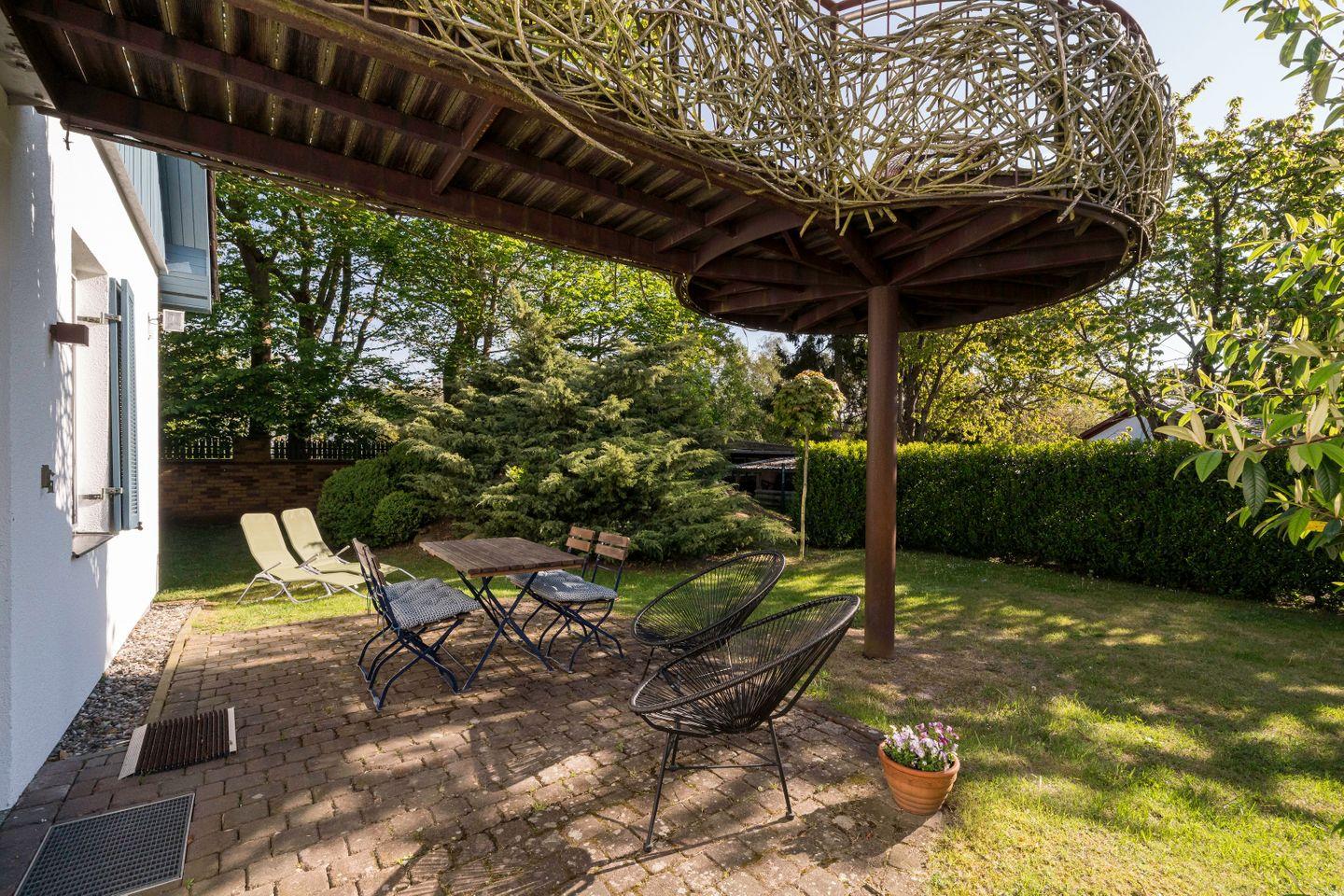 Der großzügige Garten steht allen Gästen zur Verfügung und bietet zahlreiche Freizeitmöglichkeiten: ein Grillplatz, eine Schaukel, eine Tischtennisplatte und ein charmantes Gartenhaus sorgen für Abwechslung und Geselligkeit. Für Entspannung sorgt die stylische Sauna mit Ruheraum und Dusche auf dem Hof – ein Ort zum Wohlfühlen und Abschalten. Ein überdachter Fahrradstellplatz und ein PKW-Stellplatz runden das Angebot ab. Diese Ferienwohnung kombiniert barrierefreien Komfort mit stilvoller Ästhetik und vielfältigen Freizeitmöglichkeiten, ideal für einen rundum gelungenen Urlaub.