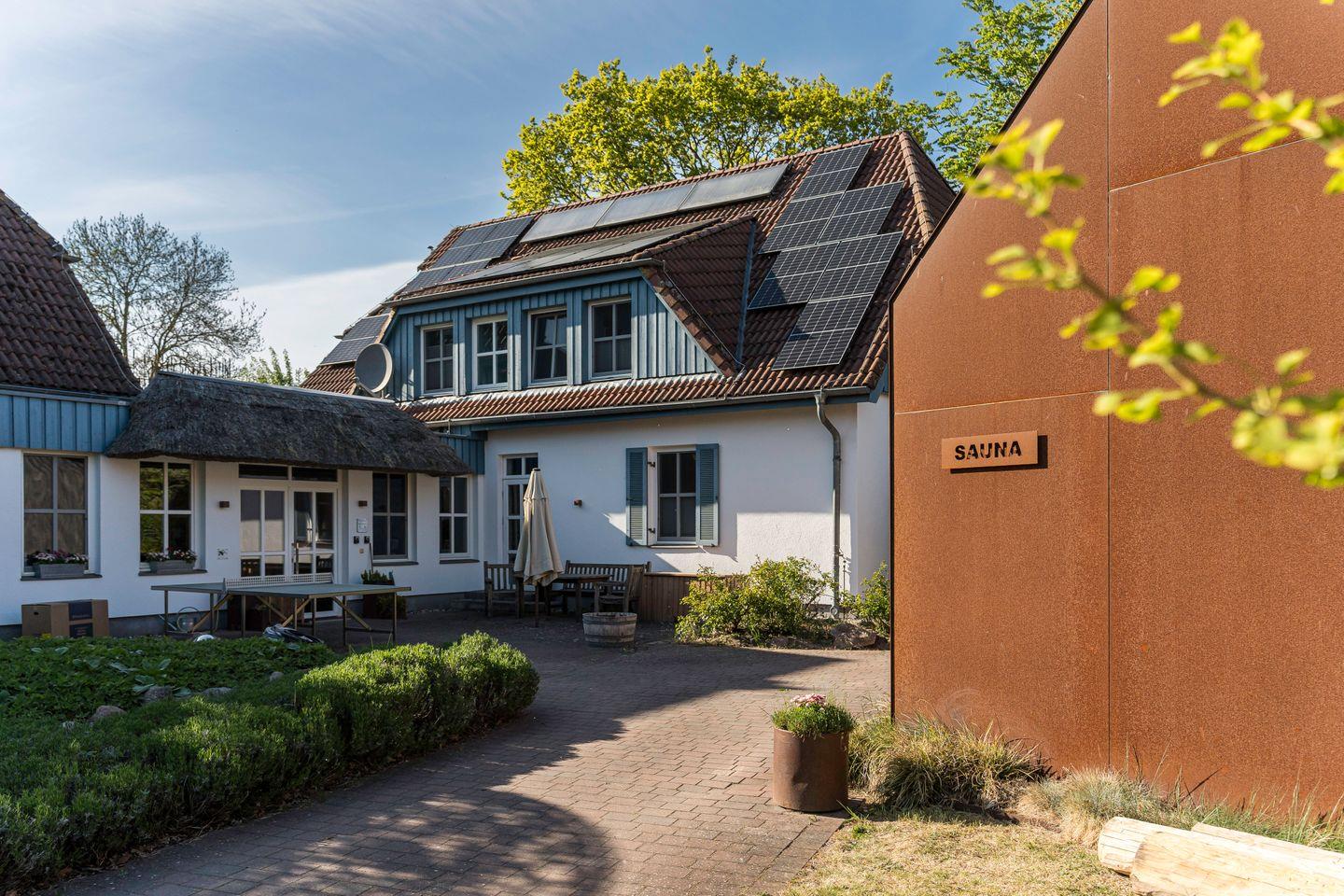Die Ferienwohnung verfügt über ein separates Saunahäuschen, das gemeinschaftlich von allen Wohnungen genutzt wird. Die Nutzung erfolgt nach vorheriger Anmeldung über eine Saunaliste. Weitere Highlights sind eine kostenfreie Wallbox zum Aufladen von E-Autos sowie Ladestationen für E-Bikes.