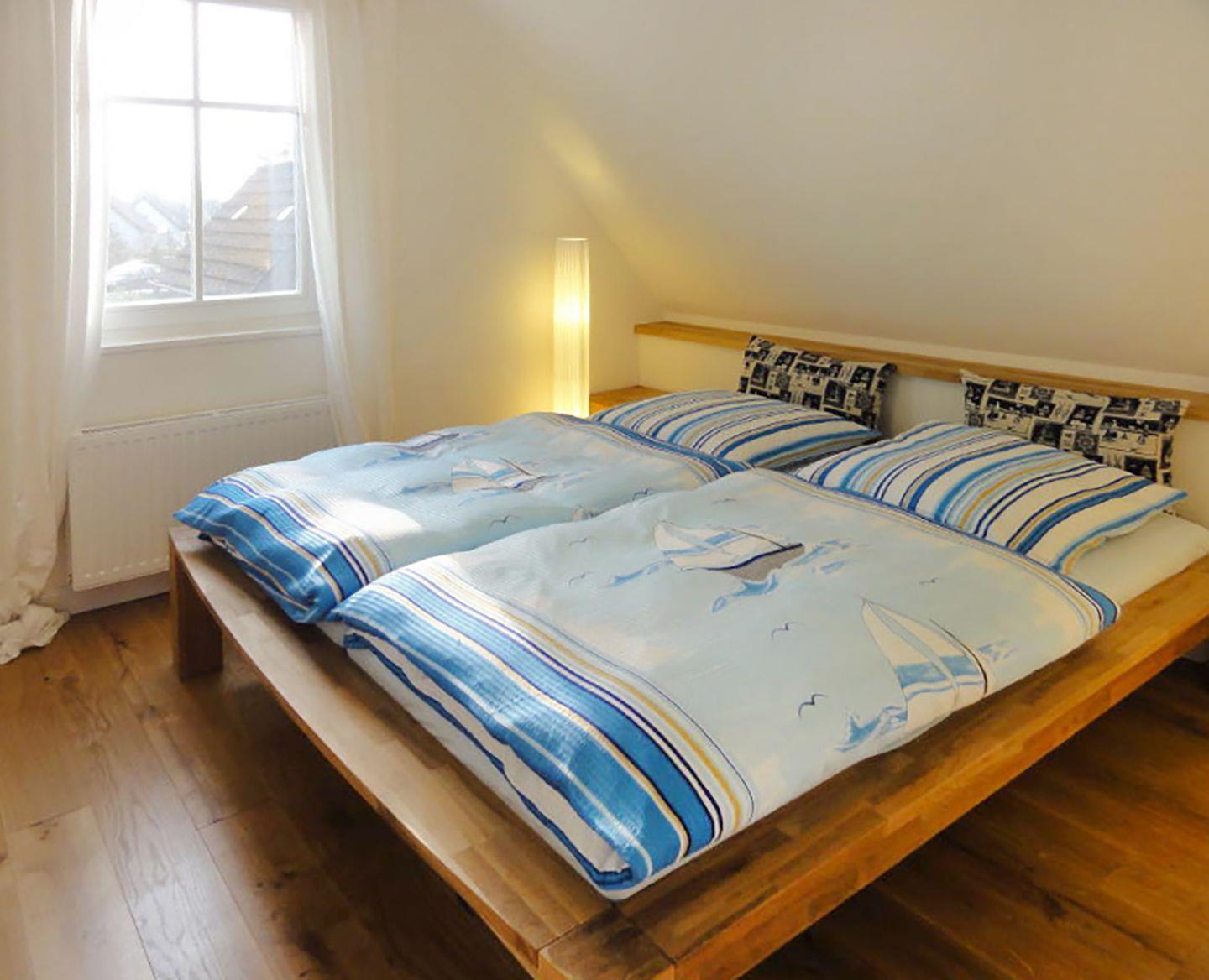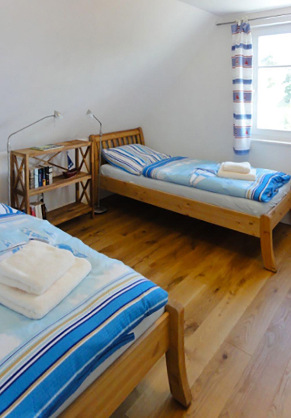 Das Duschbad im EG ist mit WC und Dusche ausgestattet und bietet den nötigen Komfort. Im Obergeschoss erwarten Sie zwei Schlafzimmer: Das erste Schlafzimmer mit einem Doppelbett (180 x 200 cm) und das zweite Schlafzimmer mit zwei Einzelbetten (90 x 200 cm) sowie einem SAT-TV. Beide Schlafzimmer bieten ausreichend Platz und sind mit Kleiderschränken ausgestattet. Ein Babyreisebett und ein Kinderhochstuhl sind ebenfalls vorhanden.