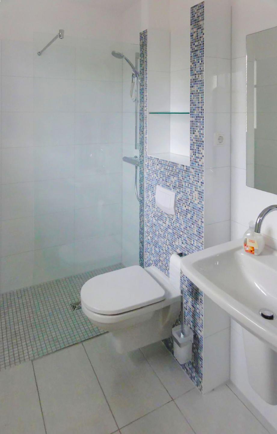 Ein weiteres Highlight der Ferienhaushälfte ist die Sauna, die im Obergeschoss zur Verfügung steht – ideal für entspannende Momente nach einem Tag in der Natur. Zudem gibt es ein weiteres Duschbad mit WC im Obergeschoss.