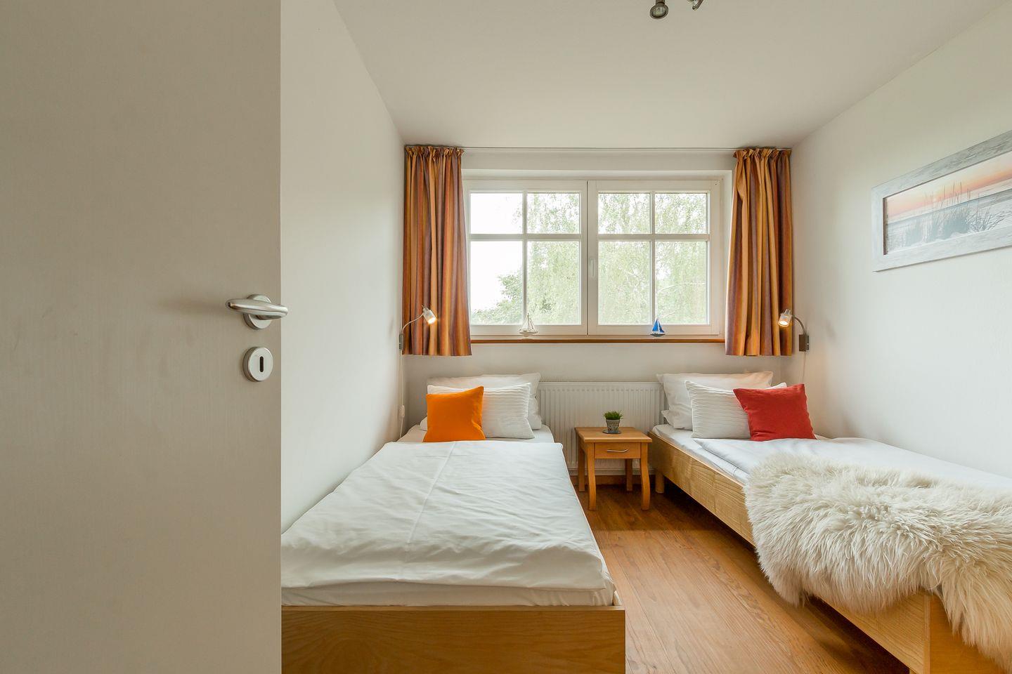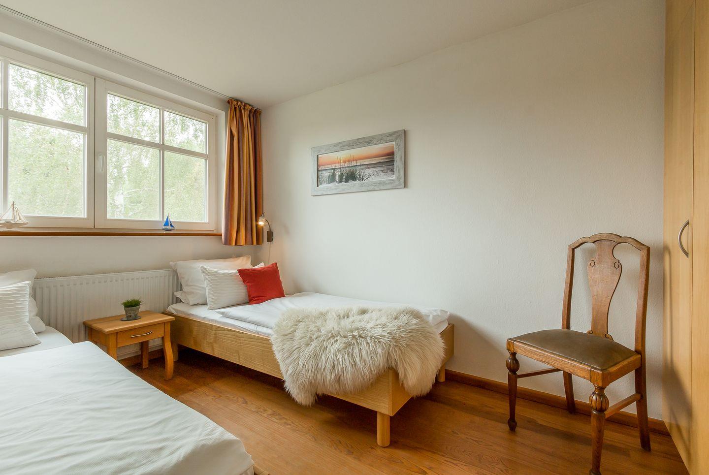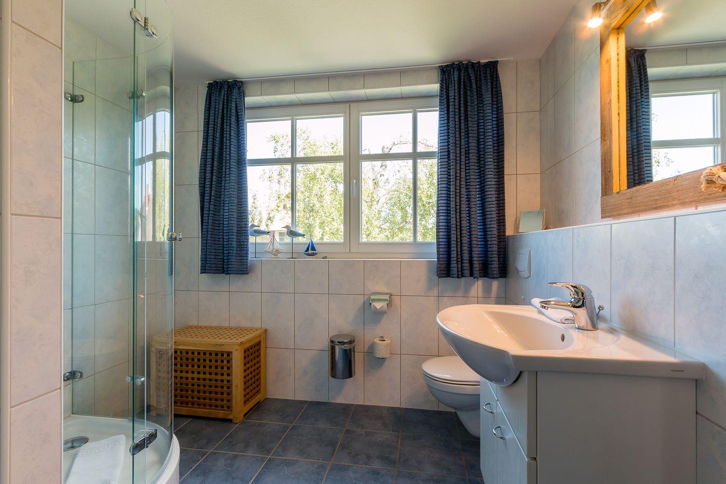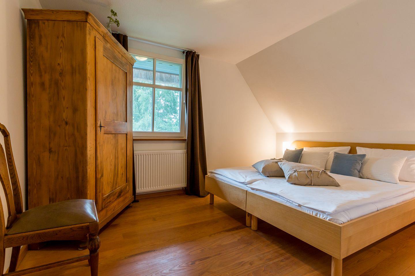 Über eine Naturholztreppe gelangst du in das Obergeschoss. Hier befinden sich die drei Schlafzimmer, die mit je einem Doppelbett ausgestattet sind. Warme Farben, hochwertige Holzmöbel und der Dielenboden sorgen für zusätzliche Behaglichkeit, die den Schlaf fördert und dir erholsame Nächte schenkt. Ein weiteres Badezimmer mit Dusche und WC ist ebenfalls auf dieser Etage untergebracht. Eine eigene kleine Wellness-Oase wartet im Spitzboden auf dich. Denn die Klafs-Sauna und die angrenzende Schwalldusche sorgen für die richtige Entspannung nach einem aktiven Urlaubstag und bieten Wohlfühlkomfort zu jeder Jahreszeit. Das separate WC rundet den Wellnessbereich perfekt ab.
