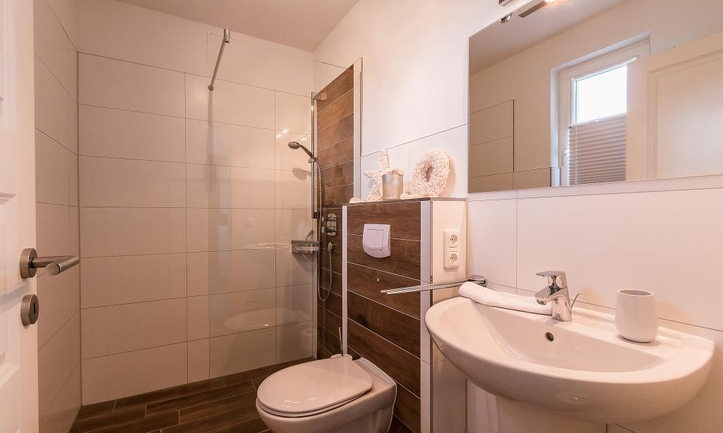 Im Erdgeschoss erwartet dich ein freundlicher, lichtdurchfluteter Wohnraum mit einer gemütlichen Eckcouch am Kaminofen. Die voll ausgestattete Küche und der Essbereich fügen sich unmittelbar in den Raum ein und schaffen einen offenen Wohncharakter. Hier lässt es sich gemeinschaftlich kochen, schlemmen und klönen. Ein Gästebad mit Dusche/WC und Fußbodenheizung sowie der Hauswirtschaftsraum mit einer Waschmaschine befinden sich ebenfalls im Erdgeschoss. Zwei Schlafzimmer, die jeweils mit einem Doppelbett und einem TV ausgestattet sind, befinden sich im Obergeschoss. Auch ein zweites Bad mit Dusche/WC und Fußbodenheizung ist auf dieser Etage vorhanden und sorgt mit der integrierten Sauna für kleine Wellness-Momente zu jeder Jahreszeit.