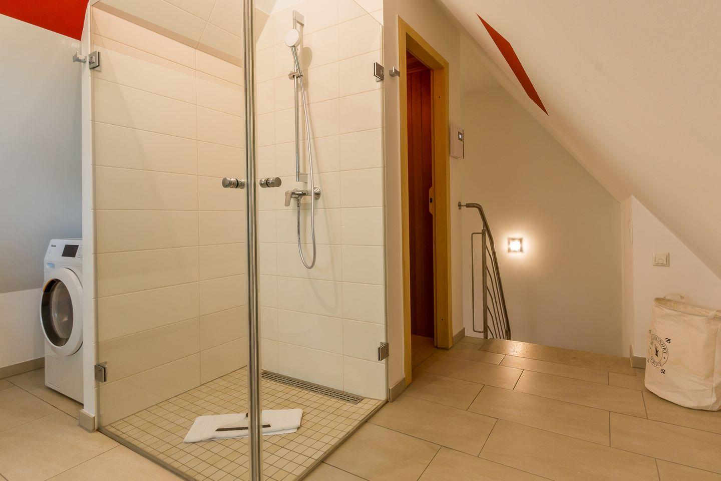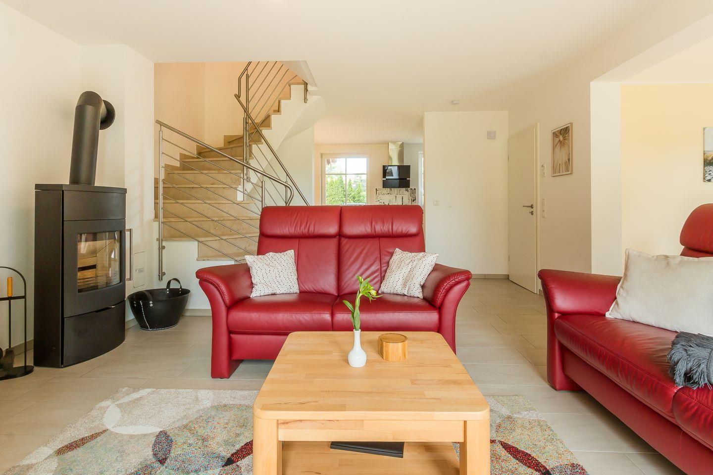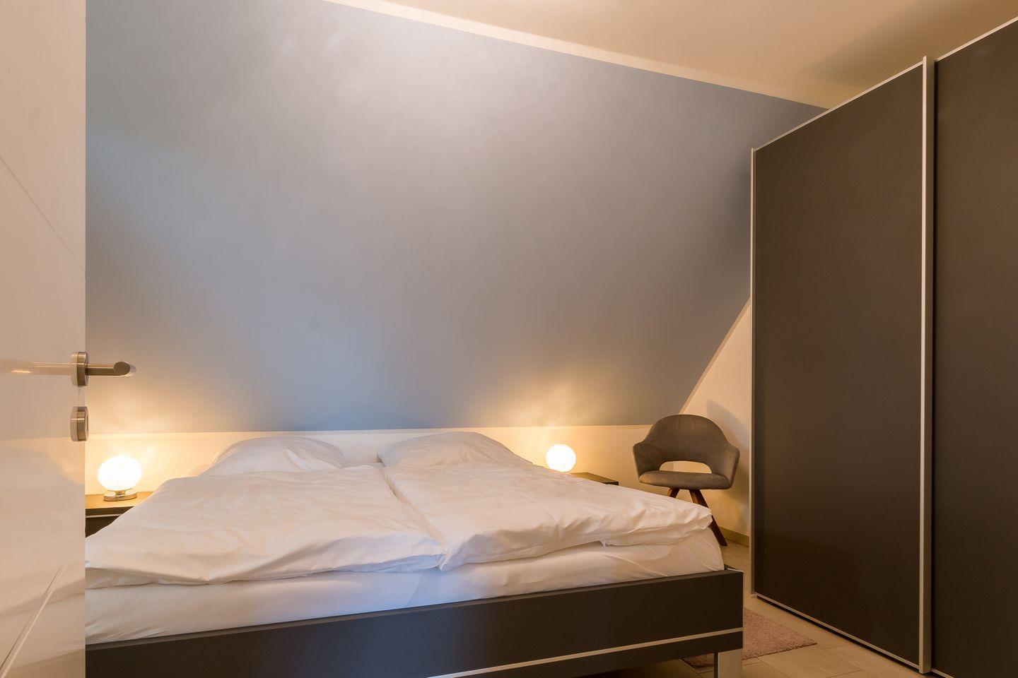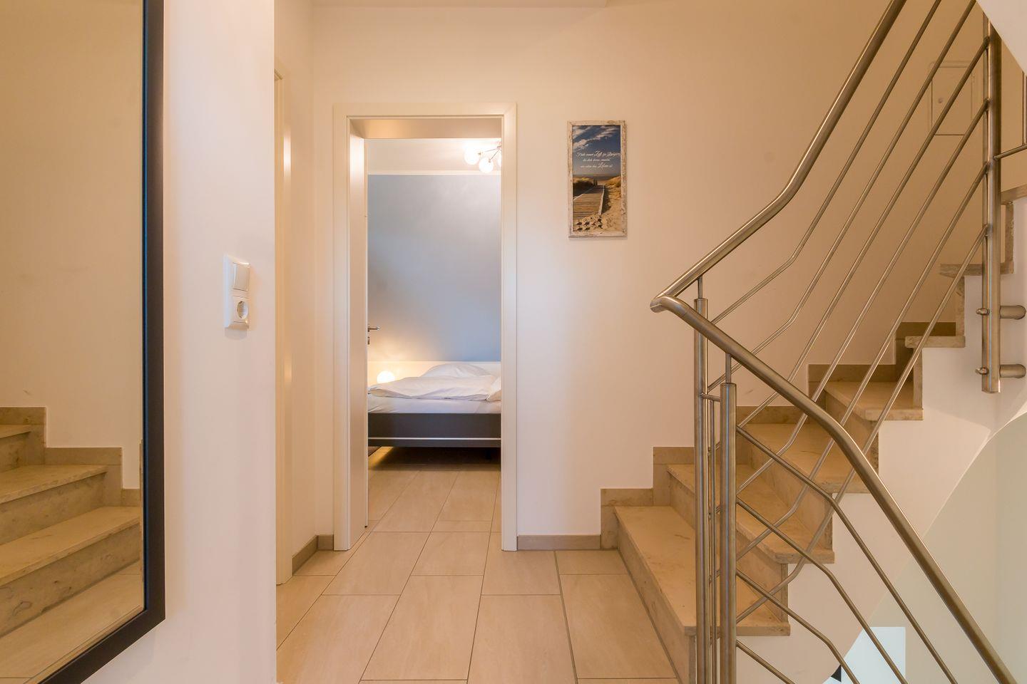 Im Erdgeschoss erwartet dich ein lichtdurchfluteter und großzügig gestalteter Wohnbereich mit gemütlicher Sofaecke am Kamin und großem TV. Offen und dennoch abgetrennt vom Wohnbereich befindet sich die moderne und vollausgestattete Küche mit sonnigem Essbereich. Hier lässt es sich nach ganz nach Gusto Kochen und Klönen. Ein erstes Tageslichtbad mit Dusche und WC gehört ebenfalls zum Erdgeschoss. Über eine Treppe gelangst du in das erste Obergeschoss und den Schlafbereich des Hauses. Das Hauptschlafzimmer ist clean gestaltet, mit hochwertigem Doppelbett, Kleiderschrank und Verdunklungsvorhängen für einen erholsamen Schlaf. Das zweite Schlafzimmer verfügt über zwei Einzelbetten. Ein modernes Tageslichtbad mit Dusche und WC bietet zusätzlichen Wohnkomfort und genug Rückzugsraum für die ganze Familie. Ein besonderes Highlight ist der kleine Wellnessbereich im Dachgeschoss mit Sauna, Dusche und Ruhebereich.