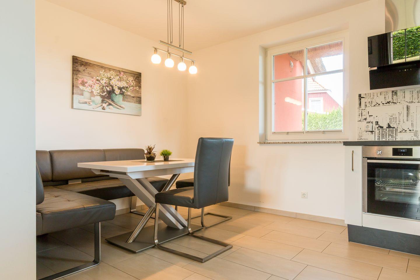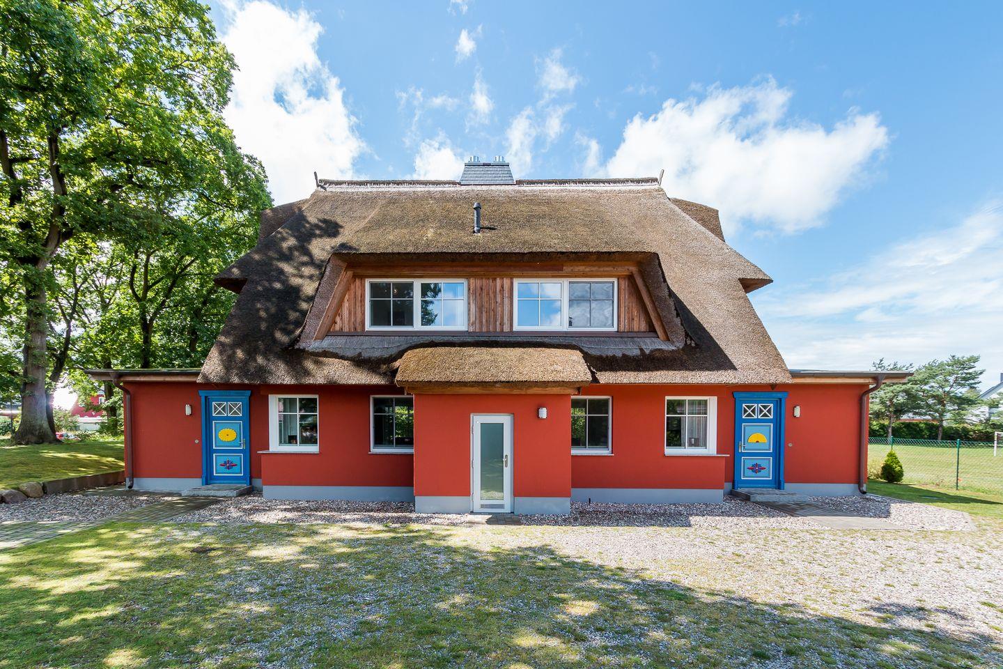 Die tolle Reetdach-Doppelhaushälfte wurde 2020 neu gebaut. In ruhiger Lage und dennoch zentral im Ortskern von Wieck steht "An den Eichen 1" für erholsamen Landurlaub in einem der schönsten Fischerdörfer auf der Halbinsel. Das Nationalparkzentrum Darßer Arche, Cafés, Restaurants sowie der idyllische kleine Hafen sind bequem zu Fuß zu erreichen. Vor allem Aktivurlauber dürfte freuen, dass das gut ausgebaute Radwegenetz am Haus entlangführt. Dieser bringt dich zu Fuß oder mit dem Rad in den Darßer Urwald, zum wilden Weststrand, zur Boddenlandschaft oder auch in die umliegenden Dörfer und Ostseebäder.