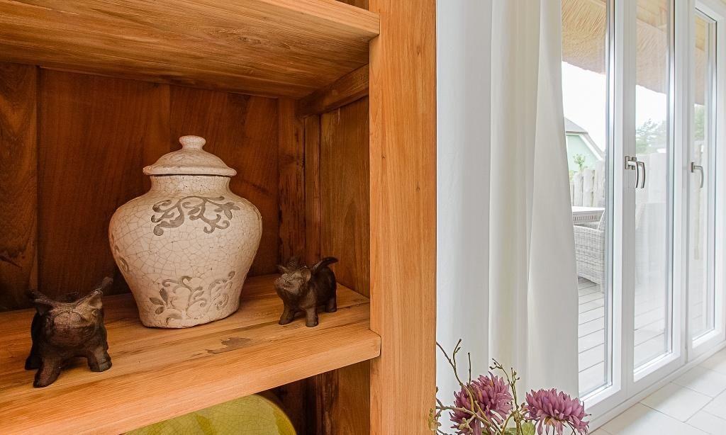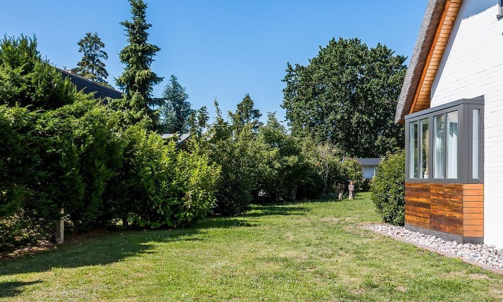 Für erholsame Stunden nach einem ereignisreichen Tag steht dir eine große Holzterrasse zur Verfügung. Mit Holzbuhnen und Blick ins Grüne lässt es sich hier genauso gut entspannen wie am Strand. Zum Ferienhaus gehört außerdem ein PKW-Stellplatz.