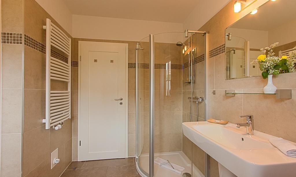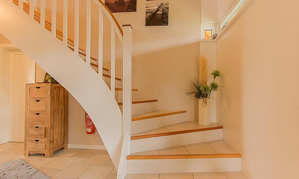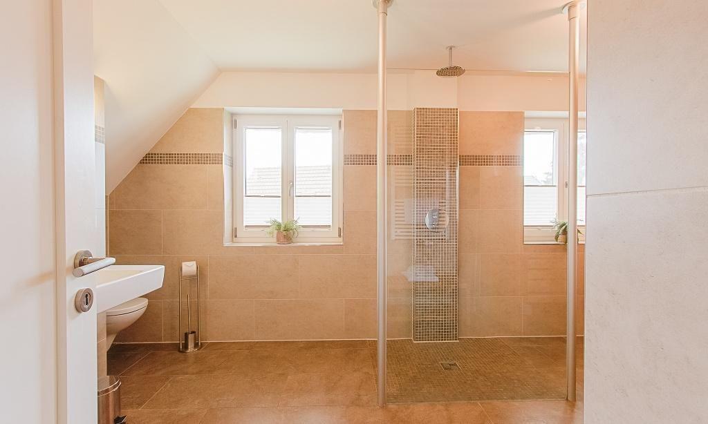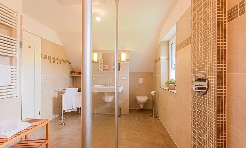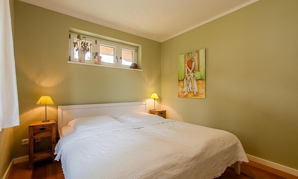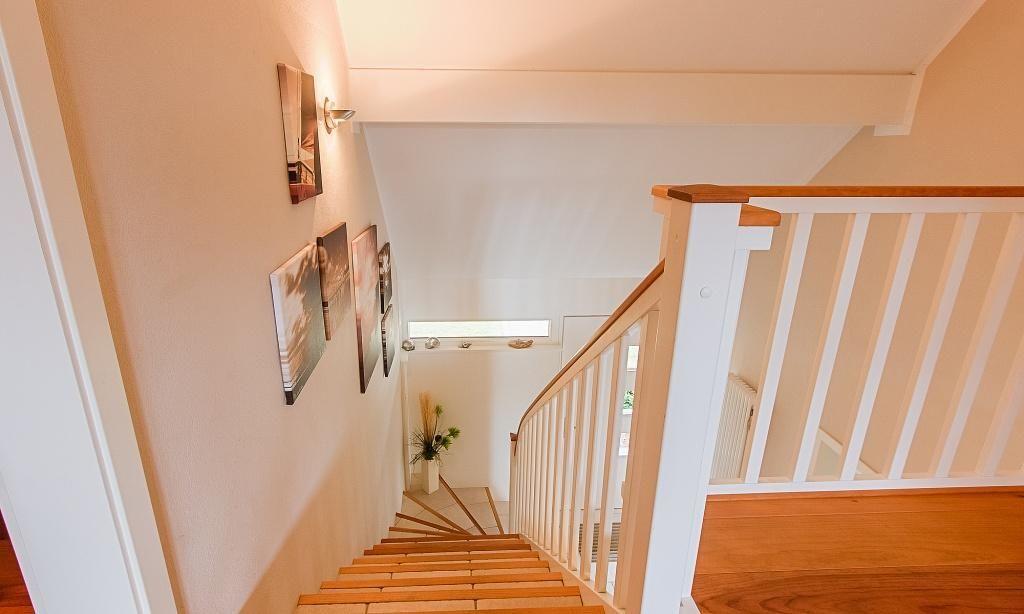 Im Erdgeschoss erwartet dich der einladende und ansprechende Wohnraum mit einer gemütlicher Sitzecke am Kaminofen. Die hochwertige Einbauküche sowie der lichtdurchflutete Essbereich sind unmittelbar integriert und schaffen einen offenen Wohncharakter. Das Bad ist mit Dusche/WC sowie einer Waschmaschine ausgestattet. Das Schlafzimmer verfügt über ein Doppelbett. Weiterhin findet ein Abstellraum in der unteren Etage Platz. Das Obergeschoss beherbergt zwei weitere Schlafzimmer, die ebenfalls mit Doppelbetten ausgestattet sind. Außerdem wurde hier eine Wohlfühloase geschaffen - eine Wohngalerie mit gemütlicher Sitzecke und TV sowie für "Leseratten" eine kleine Bibliothek. Das edle Badezimmer bietet dir neben Dusche/WC eine kleine Wellnessoase (Sauna) zum Entspannen.