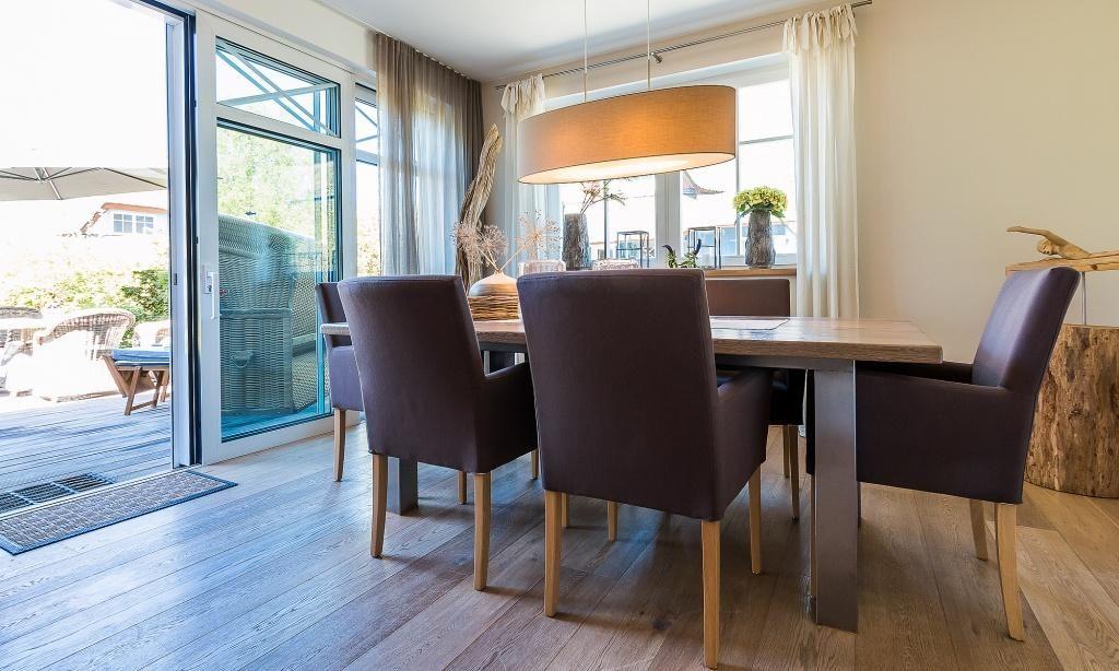 Im Außenbereich erwartet dich ein kleiner gepflegter Garten mit einer herrlichen Holzterrasse und hochwertiger Bestuhlung und Sonnenliegen. Zum Ferienhaus gehören zwei PKW-Stellplätze.