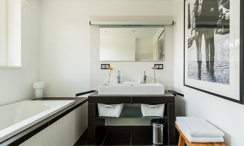 Der Außenbereich begeistert mit einem 400 Quadratmeter großen Garten und einer herrlichen Holzterrasse. Dank der hochwertigen Möbel und Sonnenliegen lässt es sich hier wunderbar entspannen und relaxen. Ein abschließbarer Fahrradschuppen und 2 PKW-Stellplätze gehören zum Ferienhaus dazu.
