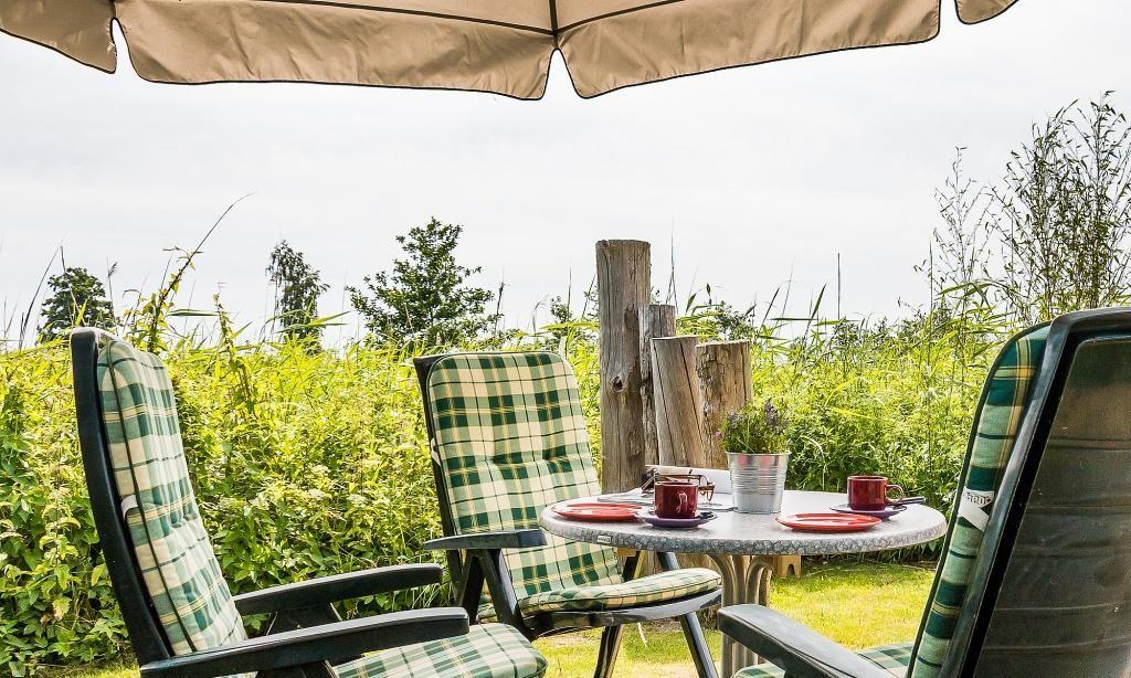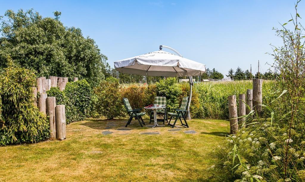Dir steht im Garten ein separater Sitzplatz mit fest installiertem Sonnenschirm zur Verfügung. Hier kannst du ganz entspannt den Tag ausklingen lassen. Außerdem gehört ein Pkw-Stellplatz auf dem Nachbargrundstück zur Ferienwohnung dazu.