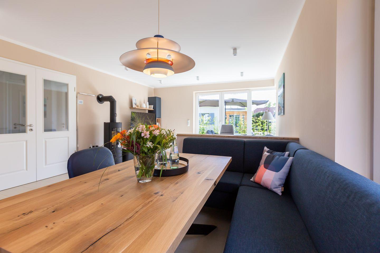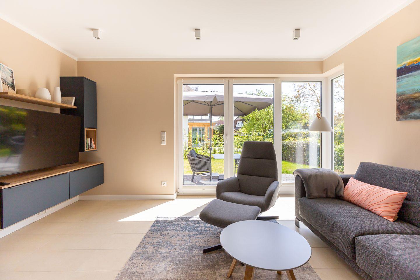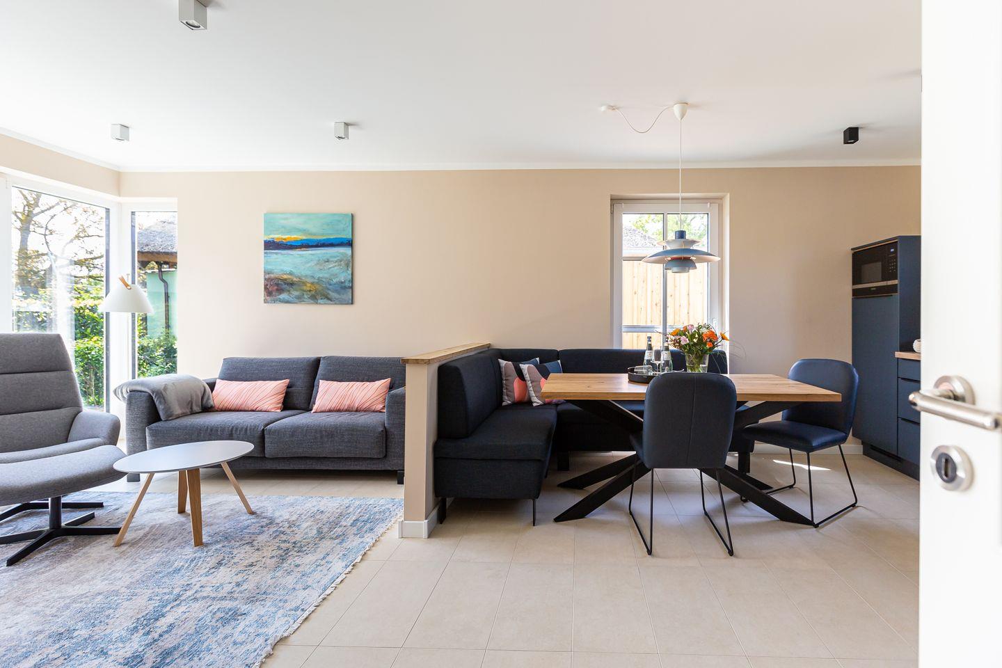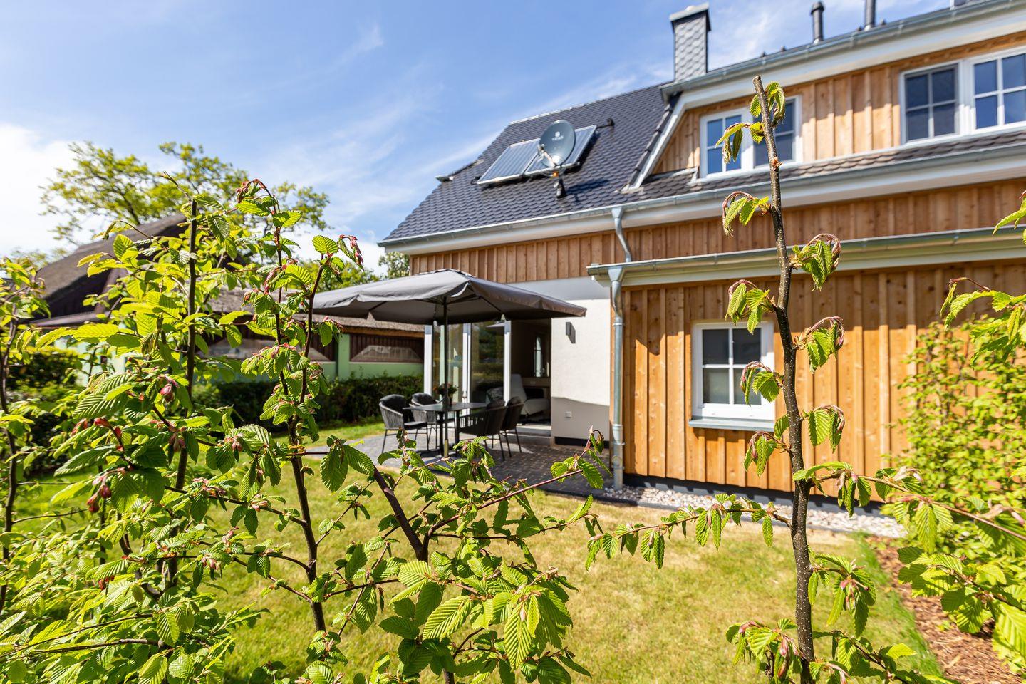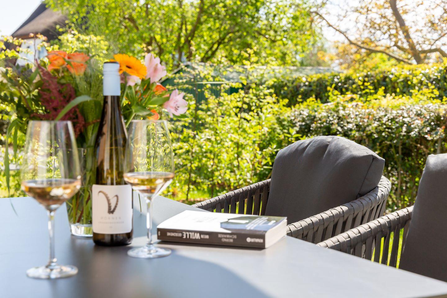 Der Außenbereich begeistert mit einem gepflegten Garten und zugehöriger Steinterrasse, die vor allem in den warmen Sommermonaten nach draußen lockt. Eine E-Bike-Ladestation, zwei PWK- und abschließbare Fahrradstellplätze im Gartenhaus stehen ebenfalls zur Verfügung. So klingt Ferienhausurlaub in einem der schönsten Dörfer der Halbinsel? Finden wir auch und wünschen schon jetzt einen traumhaften Aufenthalt.