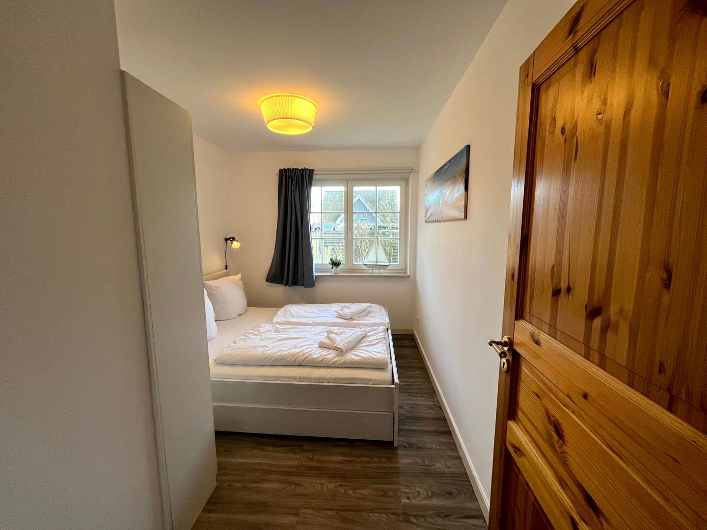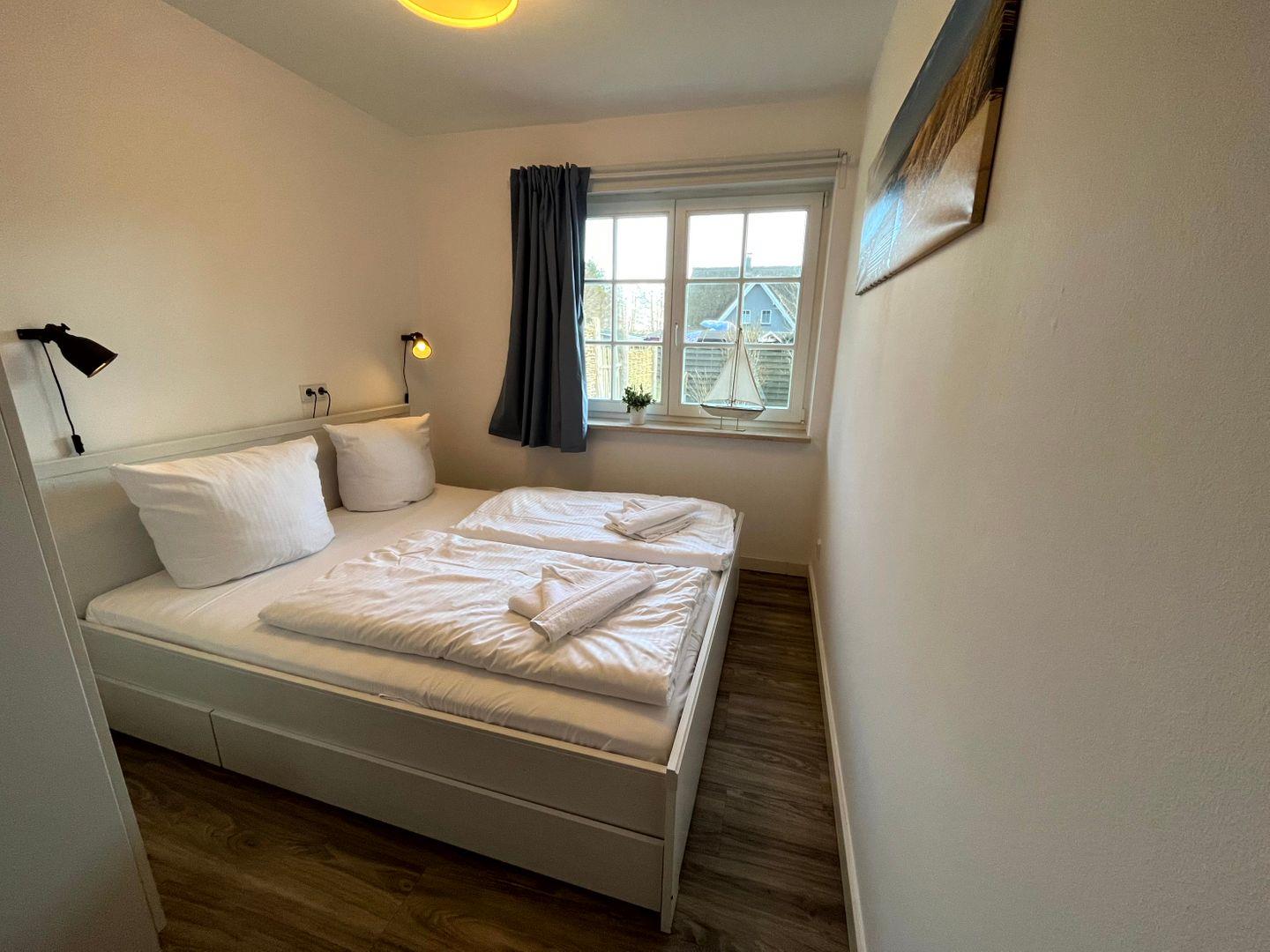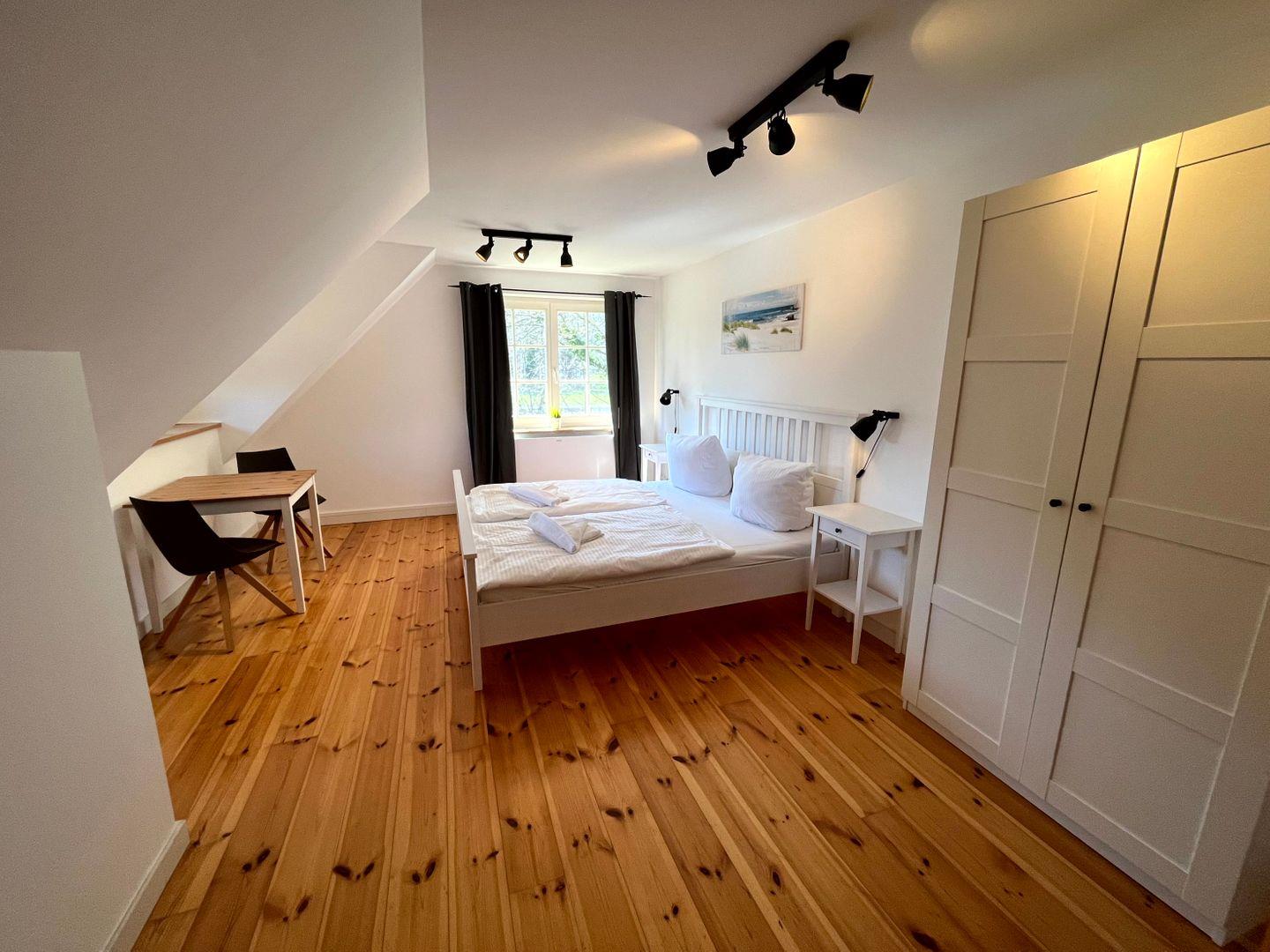 einem Doppelbett (160x200cm, Matratze durchgängig)) sowie einem Gäste-WC (WC