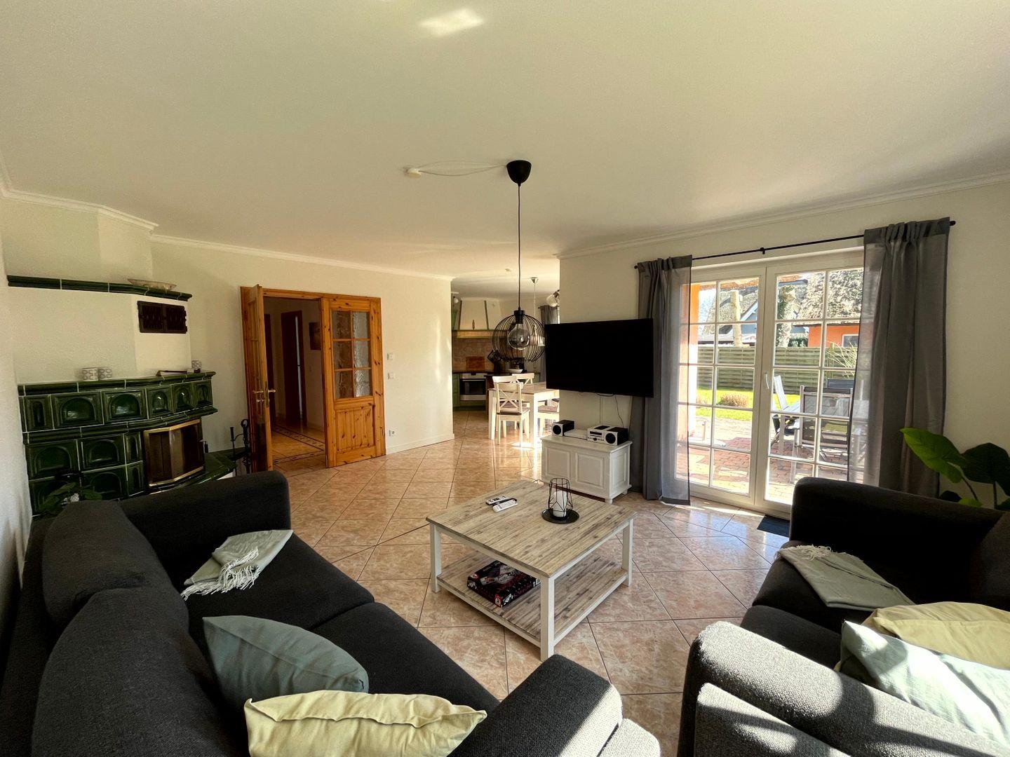 etwa 130 m² groß, besteht aus einem Wohnzimmer mit Terrasse,