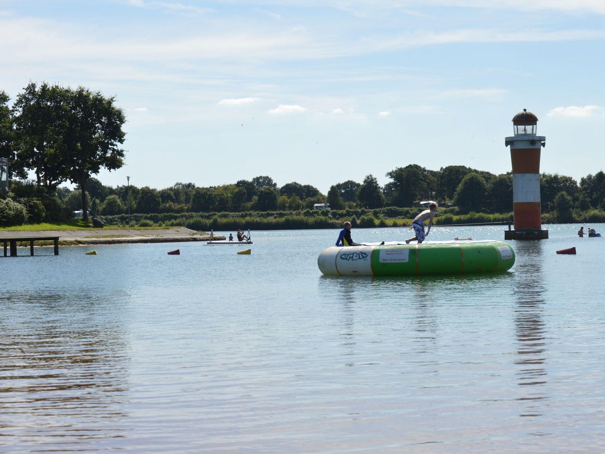 The distance to the lake is 300 metres. The holiday park offers a kiosk for the most important things. You can pick up your bread rolls and newspapers there in the morning. There is a delicious restaurant 1 km away (themed buffet at weekends). Other restaurants and shops can be found in Spohle (4 km), in Obenstrohe (6 km) and in Varel (9 km). Varel offers a beautiful harbour with shopping facilities, e.g. Bahlsen (factory outlet) and great fish restaurants. The Ammerland has a very well-developed network of cycle paths and hiking trails through a unique park landscape, which is very beneficial for guests who enjoy cycling or walking. For example, it is only 12 kilometres by road to the nearby North Sea resort of Dangast - a cycle path is also available. For all those who long for maritime flair, a trip to Bremerhaven, for example, is a must. It is just 45 kilometres from Conneforde via the new Weser Tunnel. Visit the new climate house, the zoo by the sea, the emigration centre or take a harbour tour through Europe's largest car harbour followed by a stroll through the fishing harbour showcase. If you want to cross wobbly suspension bridges like Indian Jones, or race over 100 metres across the water on a steel cable like James Bond, or swing bravely from one tree to another like Tarzan, the "Forest 4 Fun" climbing forest is just the thing for you. Forest 4 Fun currently offers something for every guest on 8 climbing courses with different levels of difficulty and heights with more than 70 climbing elements. After an introductory course, you can climb the climbing courses independently. The climbing forest is open all year round, 6 to 8 year olds can only climb when accompanied by an adult. The Bernsteinsee fishing lake can be used for fishing. A fishing licence is required. The Almsee trout pond is approx. 1.8 kilometres away. It offers its guests fishing fun in four different pond sizes, one of which is a natural pond. Trout up to 10 pounds are caught daily. Sufficient shelter is provided, even on wet days. In the summer months, the ponds are open daily from 6.30 am to approx. 9.00 pm, on days when it is not so warm, depending on the light.