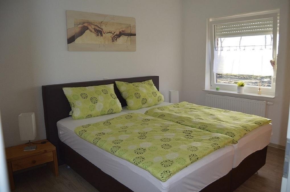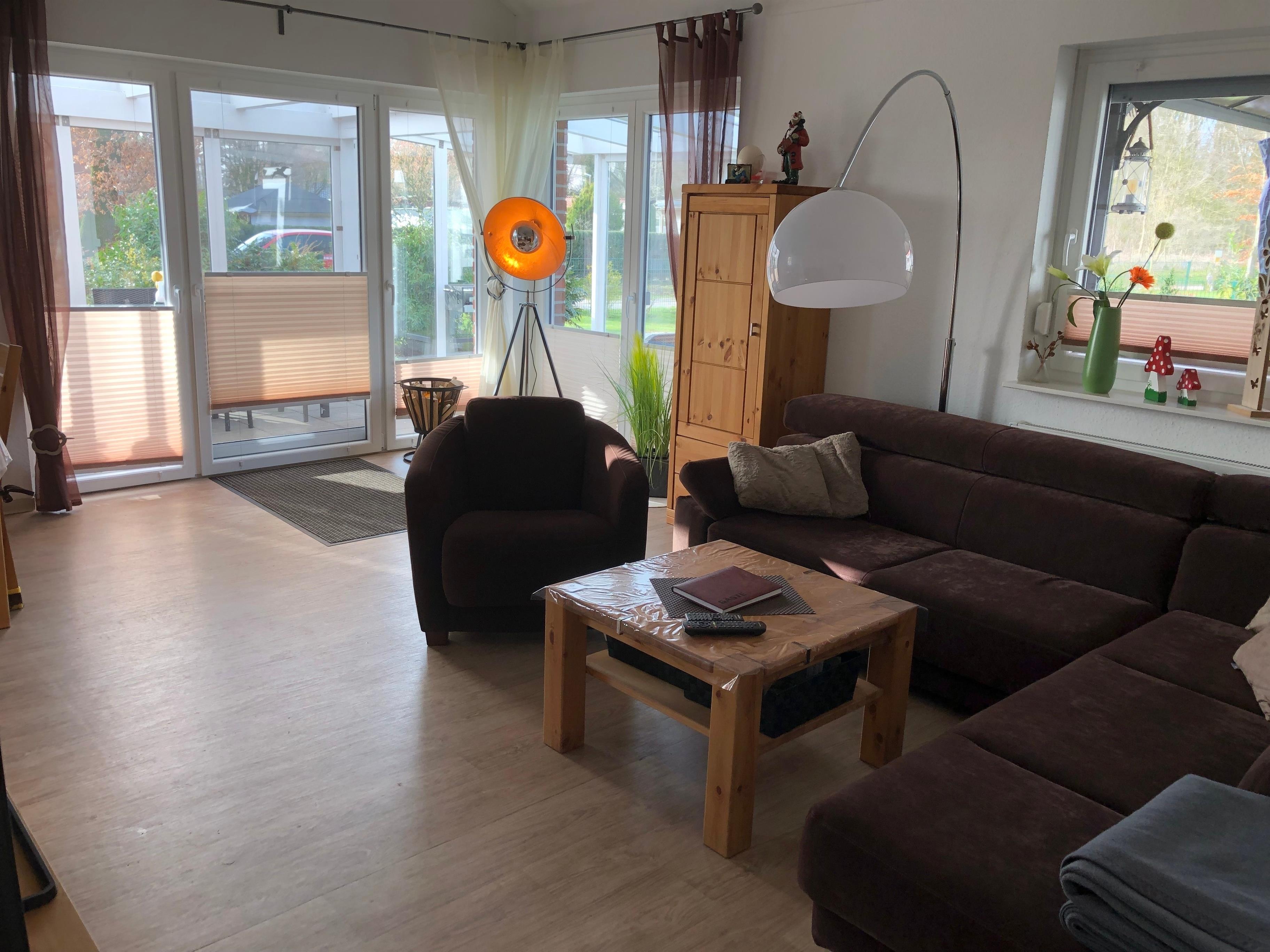 Verbringen Sie die schönste Zeit des Jahres in diesem sehr komfortablen Haus mit viel Platz für bis zu fünf Personen. Das Grundstück (550 qm) ist umzäunt mit überdachter Terrasse mit Gartenmöbeln, Sonnenliegen, Sonnenschirm und viel Grün umzu. Für die entspannten Ausflüge an den Bernsteinsee steht Ihnen ein Bollerwagen zur Verfügung. Im Inneren erwarten Sie großzügige 100 qm, ohne Schwellen und somit behindertenfreundlich. Die Ausstattung läßt keine Wünsche offen - Boxspringbetten im Schlafzimmer (180 x 200), vollausgestattete Einbauküche mit Geschirrspüler, Backofen, Kühl/Gefrierschr, Mikrowelle, etc. - Waschmaschine/Trockner, begehbarer Dusche im Bad und natürlich im offenen Wohnzimmer der Flachbildfernseher mit DVD-Player, Stereoanlage, etc. Ein Kinderzimmer und eine Galerie. Geniessen Sie die Ruhe und den Aufenthalt in der Natur - sorgloses Spielen und Relaxen ist bei diesem Ferienhaus garantiert.