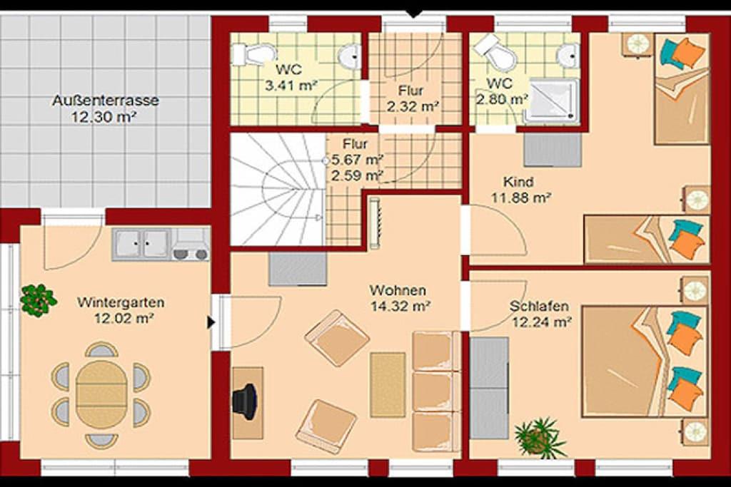 Wiek, Parterre, ruhige Lage, ca. 6 km zum Sandstrand (Ostsee), ca. 800 m zum Bodden Wohnzimmer mit gemütlicher Ausziehcouch, TV/ Sat - Flachbild, Radio, komplett ausgestattete Küchen mit 2- Plattenherd, Kühlschrank mit kl. Gefrierfach, Mikrowelle und diversen Elektrogeräten, Essecke im Wintergarten, 1. Schlafzimmer mit Doppelbett, 2. Schlafzimmer ist separat mit 2 großen Einzelbetten, Bad mit Dusche/WC, Fön, Terrasse mit Gartenmöbeln, 2 Liegestühle und 2 Gartenliegen, Grillmöglichkeit besteht auf dem Grundstück, Grill vorhanden, ca. 500 qm großes Grundstück, eigener PKW-Stellplatz Carport, Abstellmöglichkeit für Fahrräder vorhanden, Kinderstuhl vorhanden, Kinderspielplatz ca 150 m entfernt, Einkaufsmöglichkeiten und Arztpraxen in unmittelbarer Nähe, vom Yachthafen Wiek sind Ausflugsmöglichkeiten per Schiff zur Insel Hiddensee möglich, optimale Rad- und Wandermöglichkeiten, Haustiere nicht erwünscht